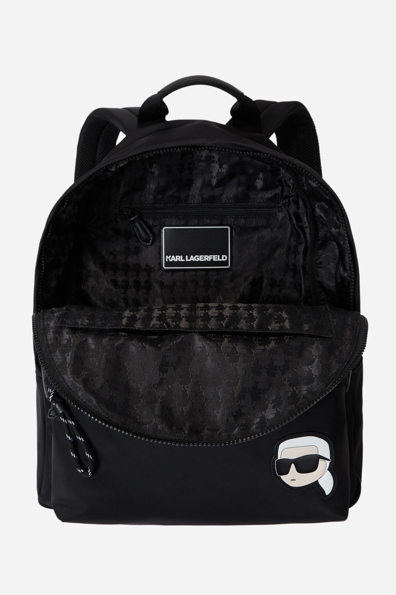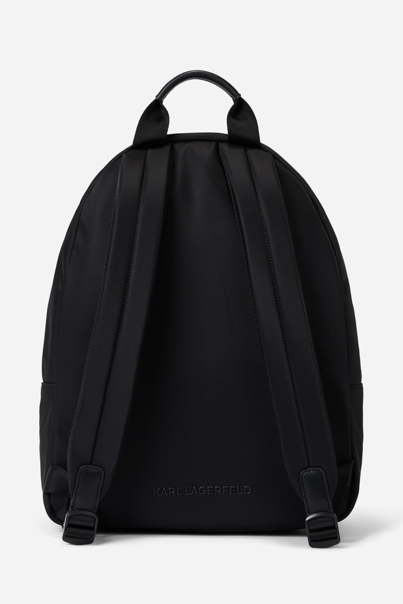 Štýlový batoh ozdobený výraznou nášivkou s logom Karl Ikonik na prednej strane. Jednofarebný dizajn s nastaviteľnými ramennými popruhmi dopĺňa pevná rúčka na nosenie a zapínanie na kovový zips striebornej farby. Praktické vrecko na prednej strane uľahčuje rýchly prístup k potrebným veciam. Podšitý interiér obsahuje ploché vrecko so zipsom. Neprehliadnuteľne štýlový doplnok, ktorý dokonale doplní Váš neformálny outfit.