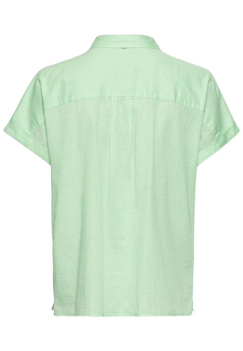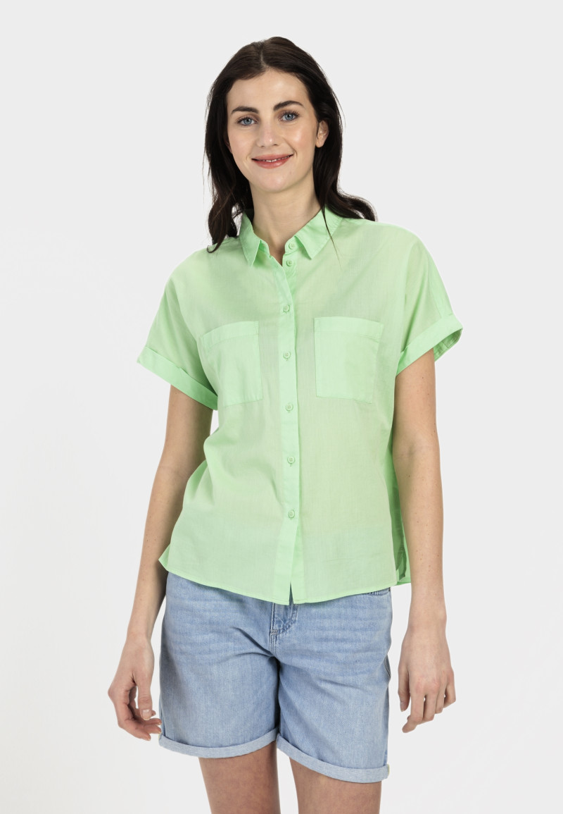 Dámska košeľa s krátkym rukávom a golierom. Kratší voľný strih, zapínanie na gombíky, na prednom diele dve výrazné vrecká. Materiálové zloženie je neobyčajne príjemné na tele, dokonale priedušné. Jedinečný kúsok, ktorý sa v horúcom letnom počasí stane nepostrádateľnou súčasťou Vášho stylingu.