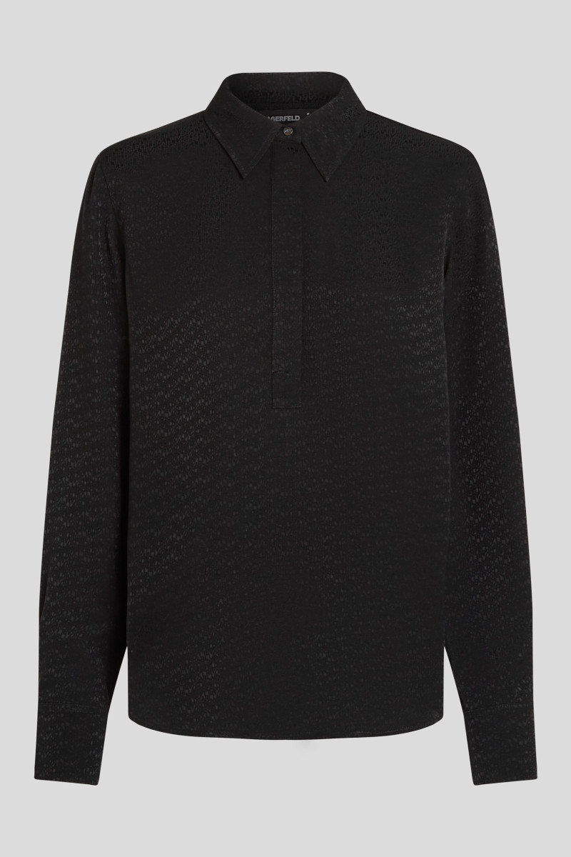 Dámska splývavá košeľa, ktorú zdobí luxusný žakárový vzor v tonálnom prevedení. Voľný dizajn so zaobleným spodným lemom dopĺňa polovičná skrytá léga so zapínaním na gombíky. Ľahká tkanina zo 100 % viskózy zaručuje dokonalú priedušnosť, jemný lesk a mimoriadne príjemný pocit pri nosení. Veľmi nápaditý kúsok, ktorý podčiarkne Vašu ženskosť v akomkoľvek ležérnom alebo elegantnom outfite.