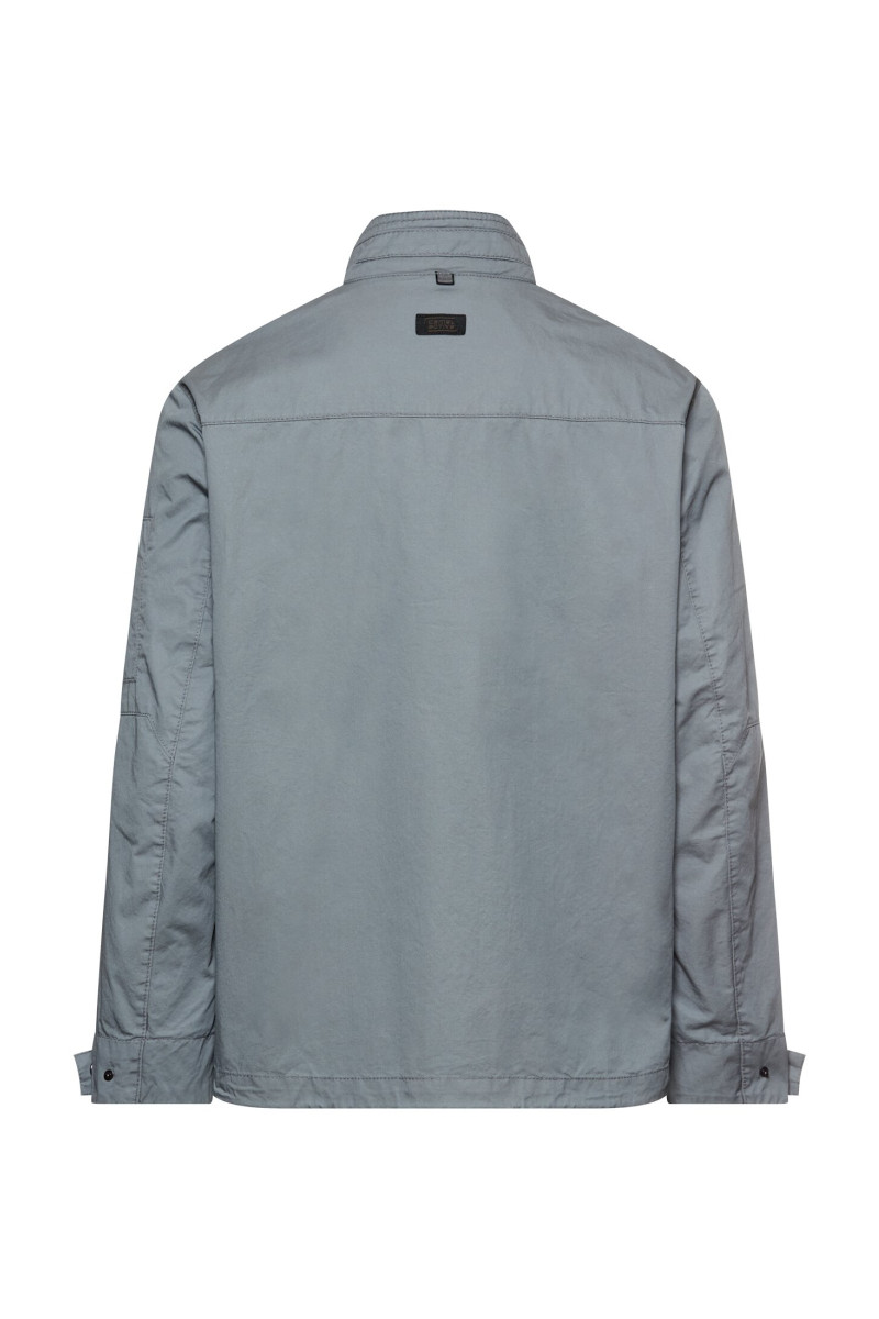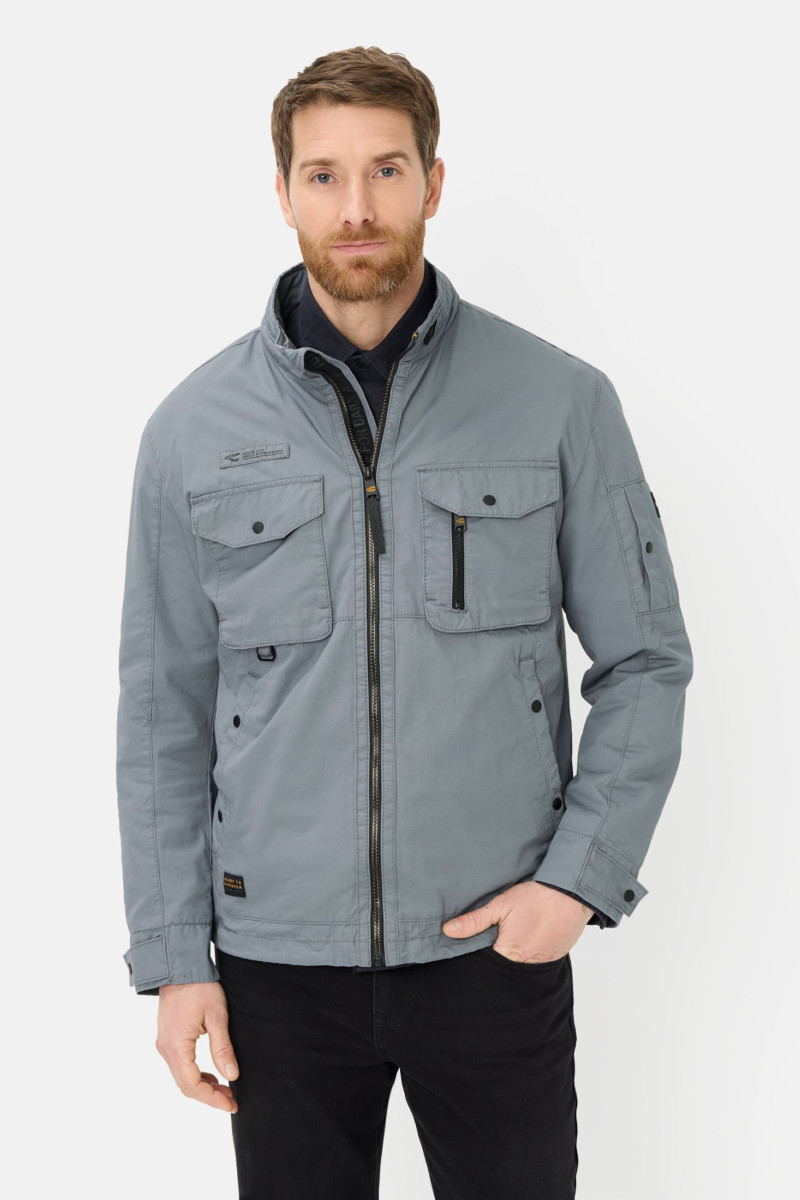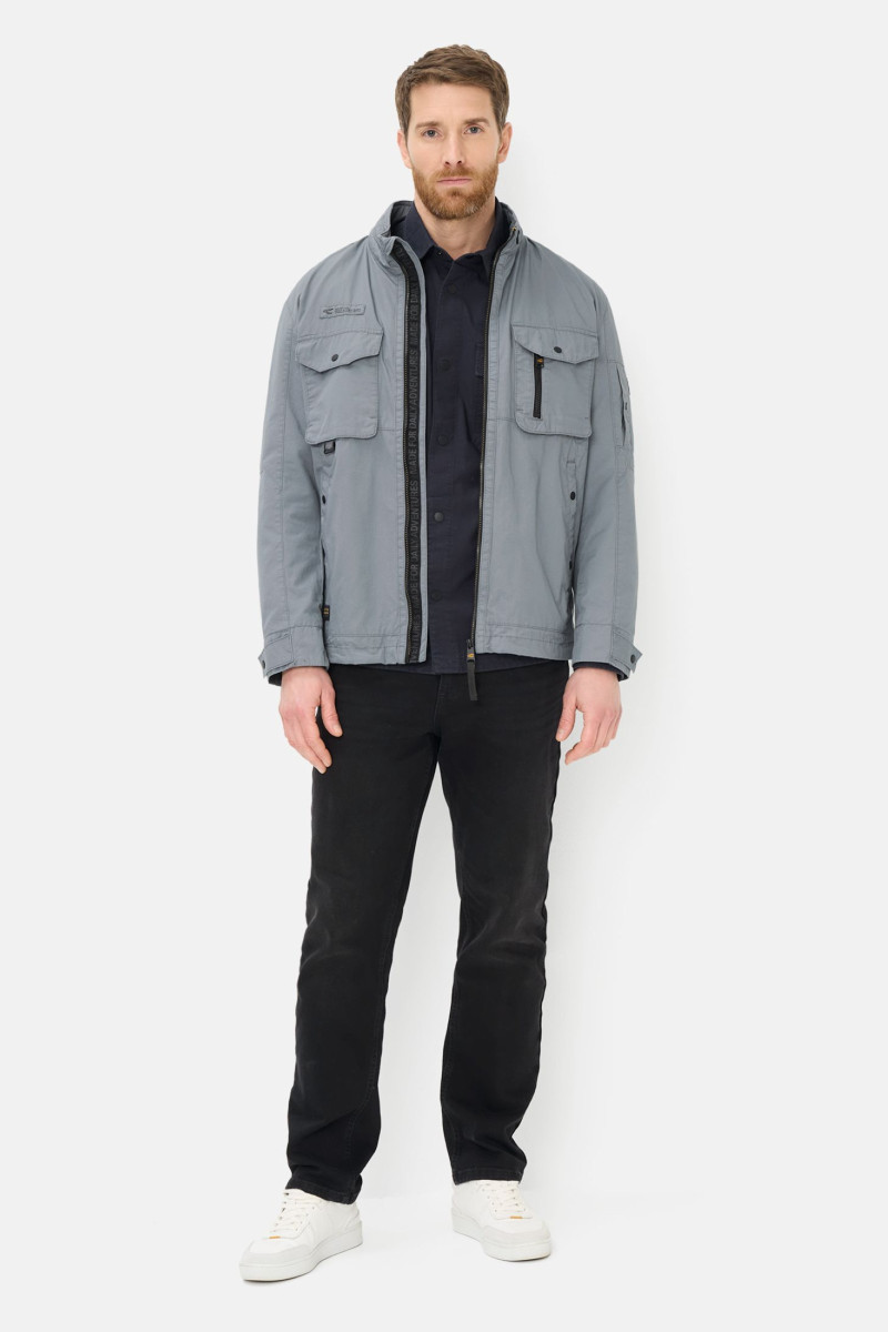 Pánska bavlnená bunda v modernom strihu s mierne spadnutými švami v ramenách. Vyvýšený typ goliera, dve nakladané vrecká na hrudi s chlopňou a dve bočné vrecká, zapínanie na zips. Materiálové zloženie je tvorené príjemne mäkkou tkaninou z bavlneného vlákna prémiovej kvality, ktoré je priedušné a je zárukou veľmi príjemného pocitu počas nosenia. Trendy kúsok, ktorý bude dokonale vyzerať v ležérnom outfite s podkladovým trikom a vyhrnutými rukávmi.