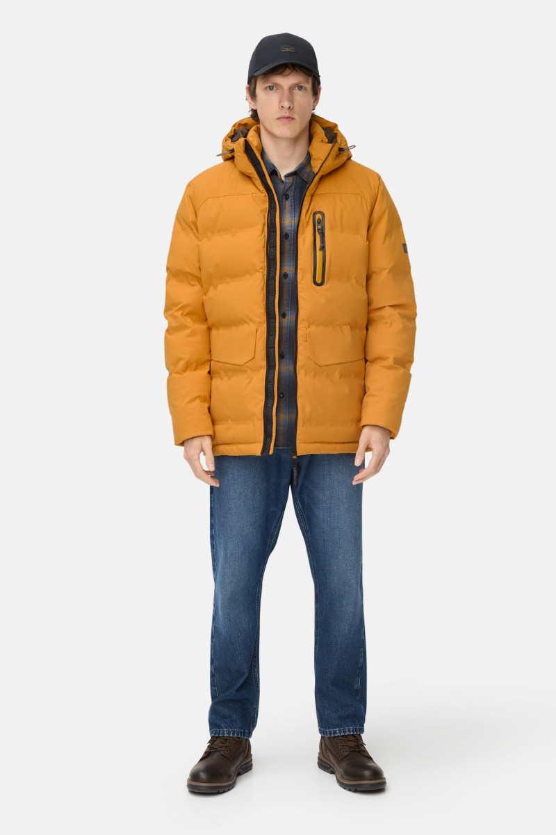Pánska funkčná prešívaná bunda s kapucňou. Rovný strih s dĺžkou po pás, jedno náprsné vrecko a dve našité bočné vrecká s klopou, kontrastné šnúrky na stiahnutie kapucne. Materiálové zloženie je maximálne ľahké, hrejivé a odolné. Výplň z dutého vlákna zaručuje nenáročnú údržbu. Materiálové zloženie je veľmi pohodlné na nosenie, plne funkčné v rozmaroch zimného počasia a praktické na údržbu.
