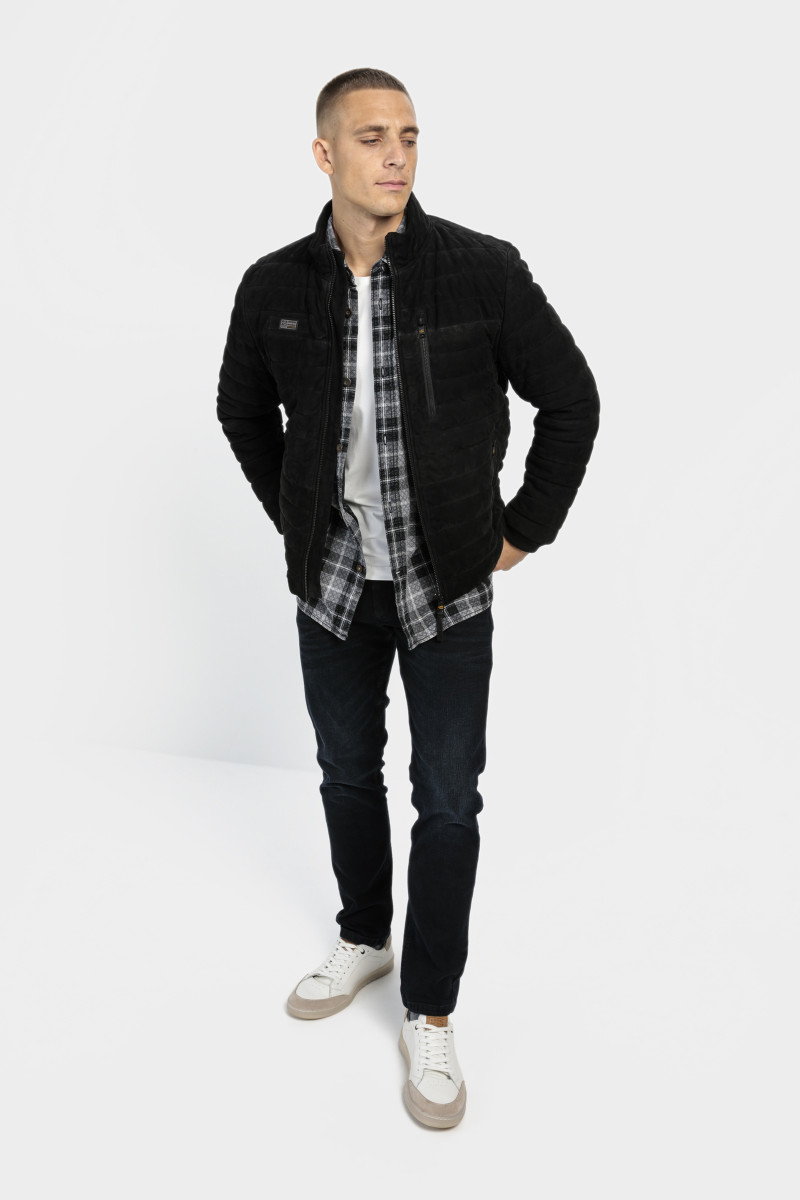 Pánska prešívaná kožená bunda. Bomber strih so stojačikom, pružné zakončenie v páse a na rukávoch dopĺňa jedno náprsné a dve bočné vrecká na zips. Prvotriedny materiál, dokonalé spracovanie a detaily utvára jedinečný kúsok, ktorý nesmie chýbať v šatníku žiadneho muža. Výborne kombinovateľný a pohodlný kúsok vhodný na každodenné nosenie.