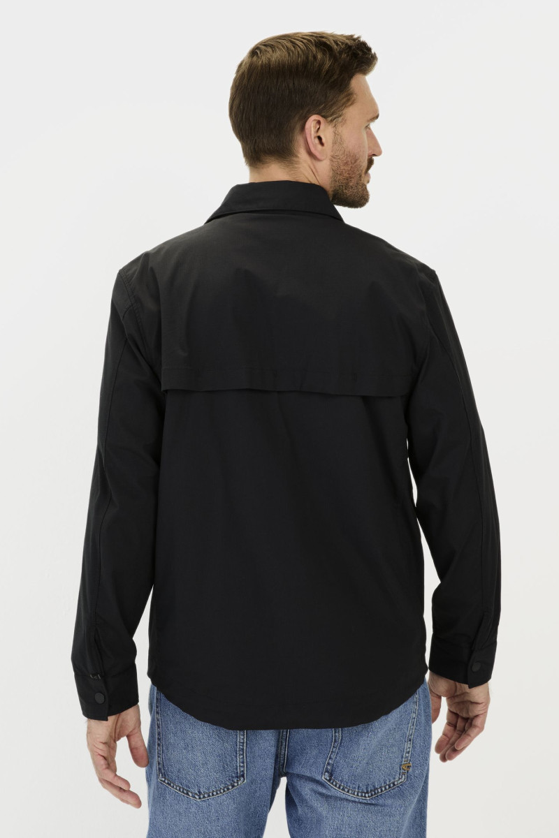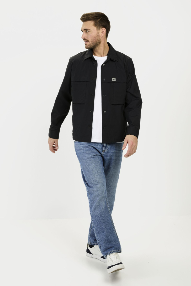 Pánska bunda s košeľovým golierom v modernom oversized strihu s mierne spadnutými švami v ramenách. Ležérny typ goliera, dve nakladané vrecká na hrudi s chlopňou, zapínanie na cvoky. Materiálové zloženie je tvorené príjemne mäkkou tkaninou z bavlneného vlákna prémiovej kvality, ktoré je priedušné a je zárukou veľmi príjemného pocitu počas nosenia. Trendy kúsok, ktorý bude dokonale vyzerať v ležérnom outfite s podkladovým tričkom a vyhrnutými rukávmi.