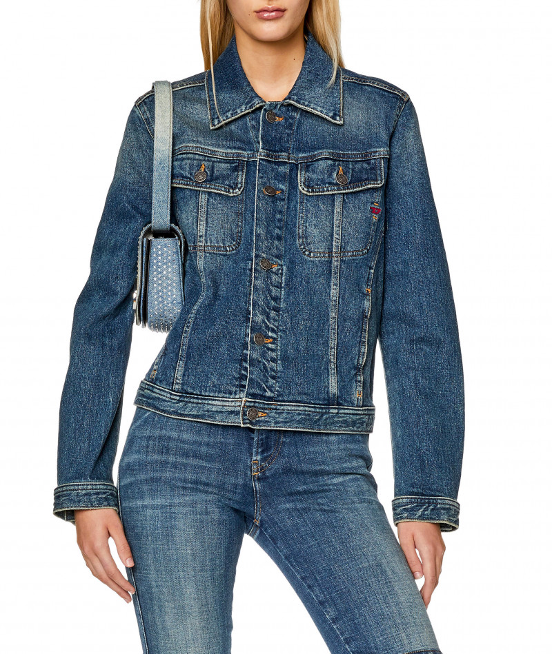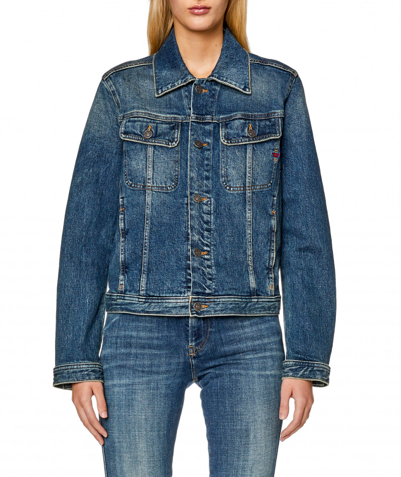 Dámska džínsová bunda. Klasická trucker silueta. Vyrobená z recyklovateľnej bavlny s prímesou streču. Vybavená náprsnými vreckami na gombíky, nastaviteľnými prvkami pre úpravu pásu a manžetami na gombíky. Tmavomodrý wash je definovaný neopracovanými hranami pre vizuálne pôsobivý vzhľad, ktorý je typický pre túto značku. Zapínanie na gombíky.