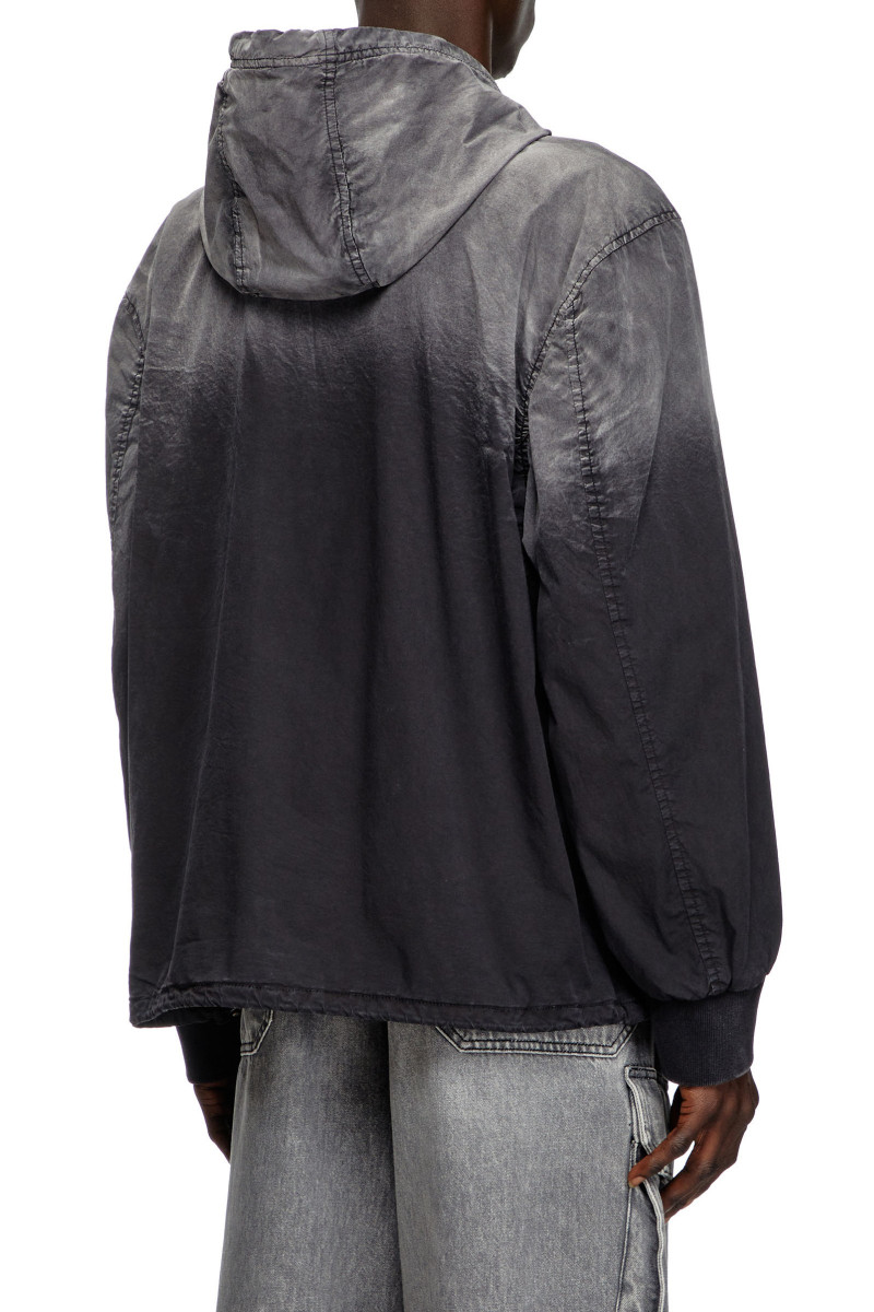 Pánska bunda s kapucňou rovného, voľného strihu. Originálny dizajn s ombre efektom doplnený vyšívaným logom Oval D na ľavom rukáve. Pomocou sťahovacích šnúrok je možné regulovať siluetu a kapucňu podľa potreby. Zapínanie na zips a dve predné vrecká. Doplnená podšívkou. Vrchný materiál, spolu s podšívkou, tvorí pevná tkanina z prémiového bavlneného vlákna, ktoré je zárukou ľahkosti, príjemnej mäkkosti a dokonalej priedušnosti. Model má na sebe IT veľkosť 48 a meria 188 cm. Veľkosť zodpovedá bežnému značeniu, pri výbere zvoľte svoje obvyklé číslo.
