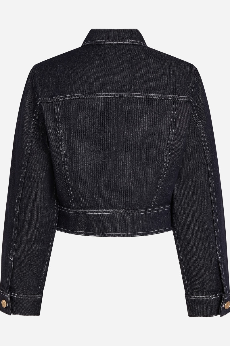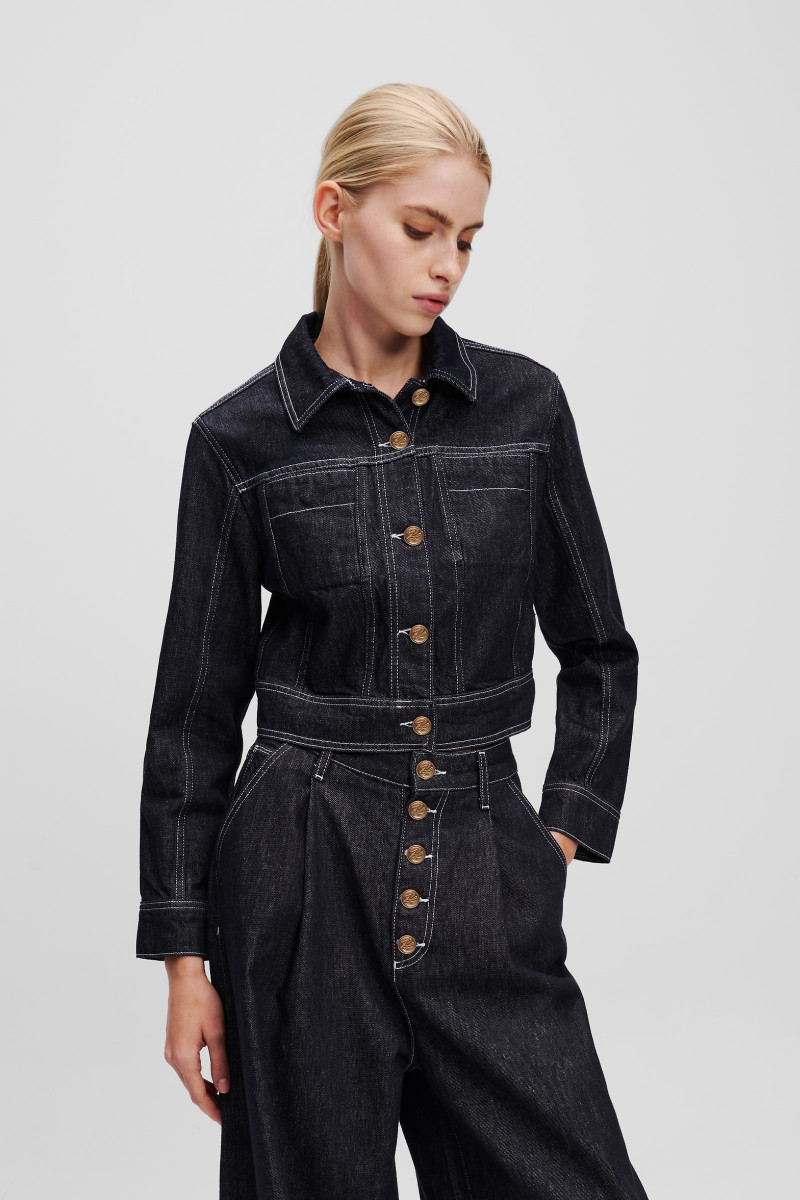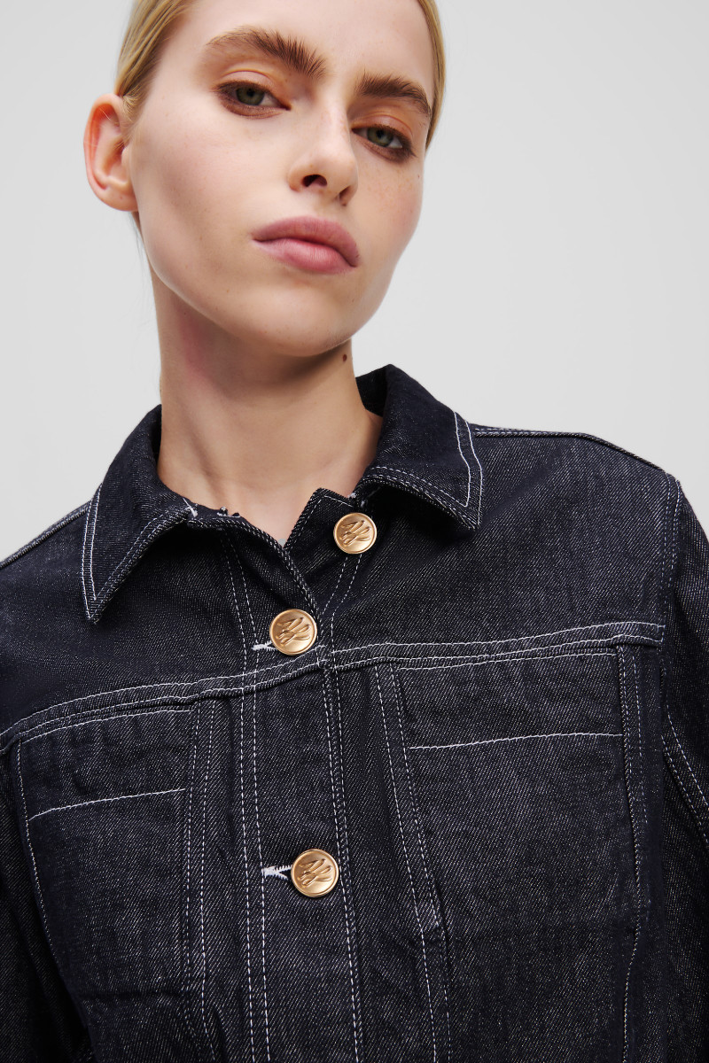 Dámska džínsová bunda skráteného strihu. Elegantný dizajn s košeľovým golierom pri krku a zapínaním na gombíky dopĺňajú voľne strihané rukávy s manžetou na zapínanie a veľké náprsné vrecká. Odolná denimová tkanina so 100% podielom prémiovej bavlny je pevná, nosením sa však stáva krásne prispôsobivou, mäkkou a veľmi príjemnou na dotyk. Výborne kombinovateľný kúsok v modernom strihu, ktorý skvele doladí každý Váš ležérny outfit.
