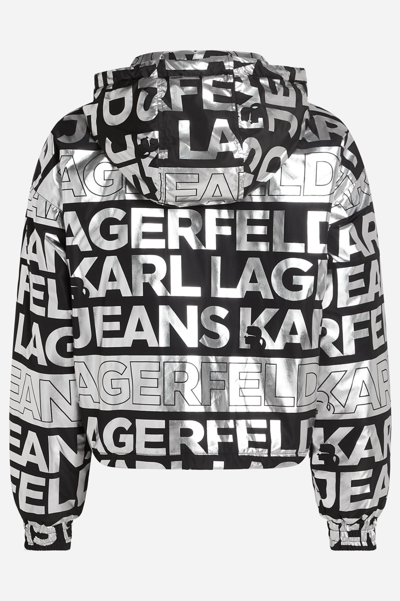 Dámska bunda do pása so zapínaním na zips, s kapucňou a s dvoma bočnými výpustkovými vreckami. Kontrastná celoplošná potlač loga Karl Lagerfeld jeans dodáva bunde fashion nádych. Materiálové zloženie vrátane ľahkej výplne zaručuje ľahkosť, pohodlie a nenáročnú údržbu. Tento praktický a nápaditý kúsok dokonale zvýrazní každý Váš outfit.