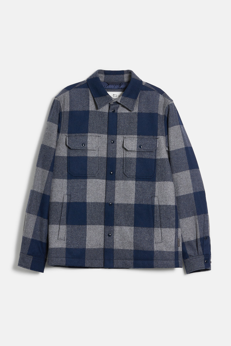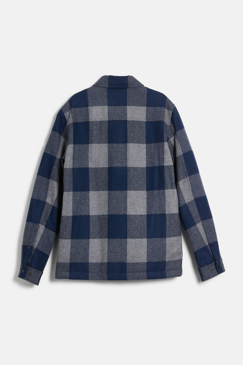 Pánska bunda v kockovanom vzore. Rovný strih s golierom a kovovými cvočkami na zapínanie dopĺňajú praktické vrecká na hrudi a na boku. Bunda má jemnú prešívanú podšívku. Kvalitná tkanina z recyklovanej talianskej vlny spolu s výplňou z kačacieho peria v pomere 90/10 zaručujú dokonalú ľahkosť, priedušnosť a prirodzenú hrejivosť. Výborne kombinovateľný kúsok, ktorý štýlovo doladí Váš neformálny outfit.