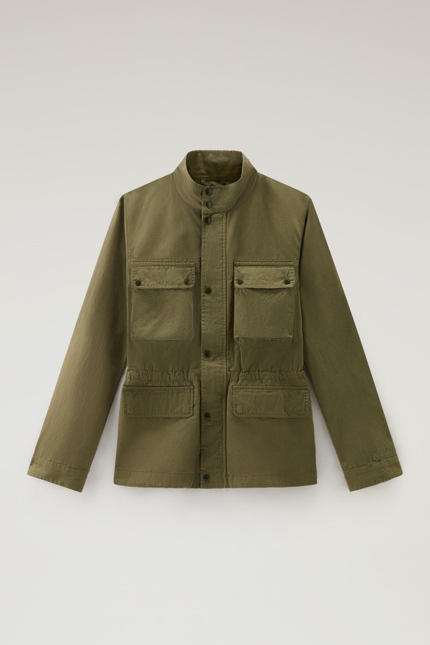 BUNDA WOOLRICH COTTON LINEN FIELD JACKET LAKE OLIVE