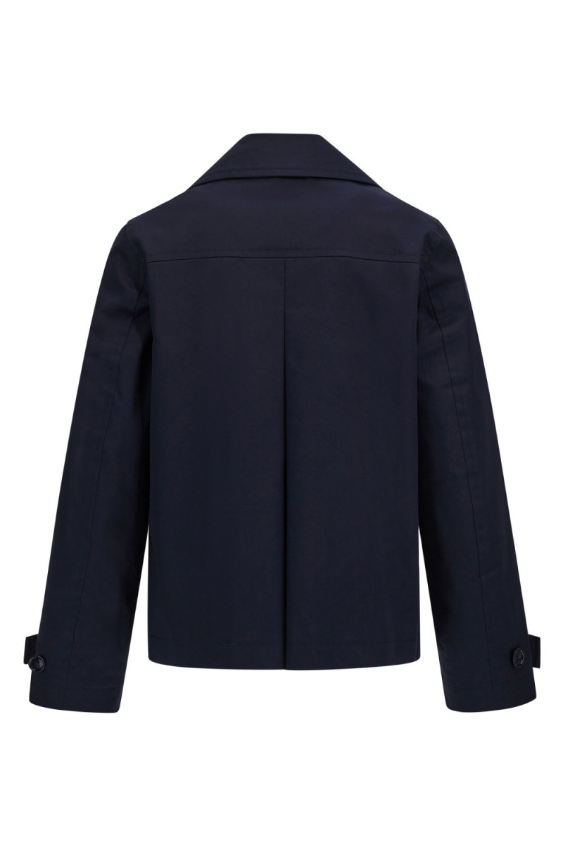 Dámsky kabátik voľného strihu a pásovej dĺžky na dvojradové zapínanie. Jednofarebný dizajn a čisté línie tejto nadčasovej klasiky, ktorá nikdy nevyjde z módy, efekte dopĺňajú široké chlopne, praktické sťahovanie rukávov a priestranné bočné šikmé vrecká. Povrchový materiál tvorí odolná tkanina, ktorá je vodoodpudivá a spoľahlivo bráni pred prefúknutím. Všestranne kombinovateľný kúsok, ktorý vám zabezpečí vysoko komfortný pocit v priebehu nosenia a veľmi šik vzhľad, pri akomkoľvek počasí.
