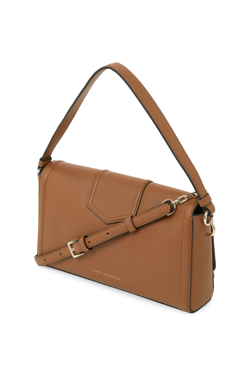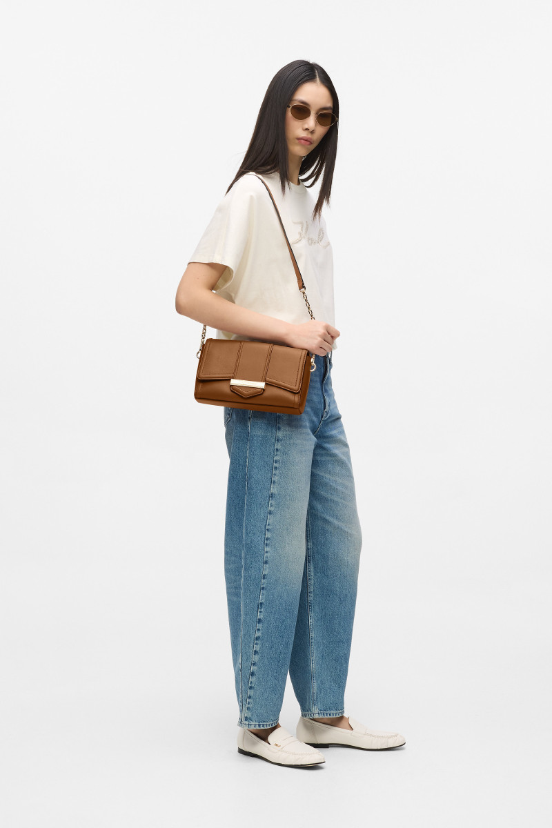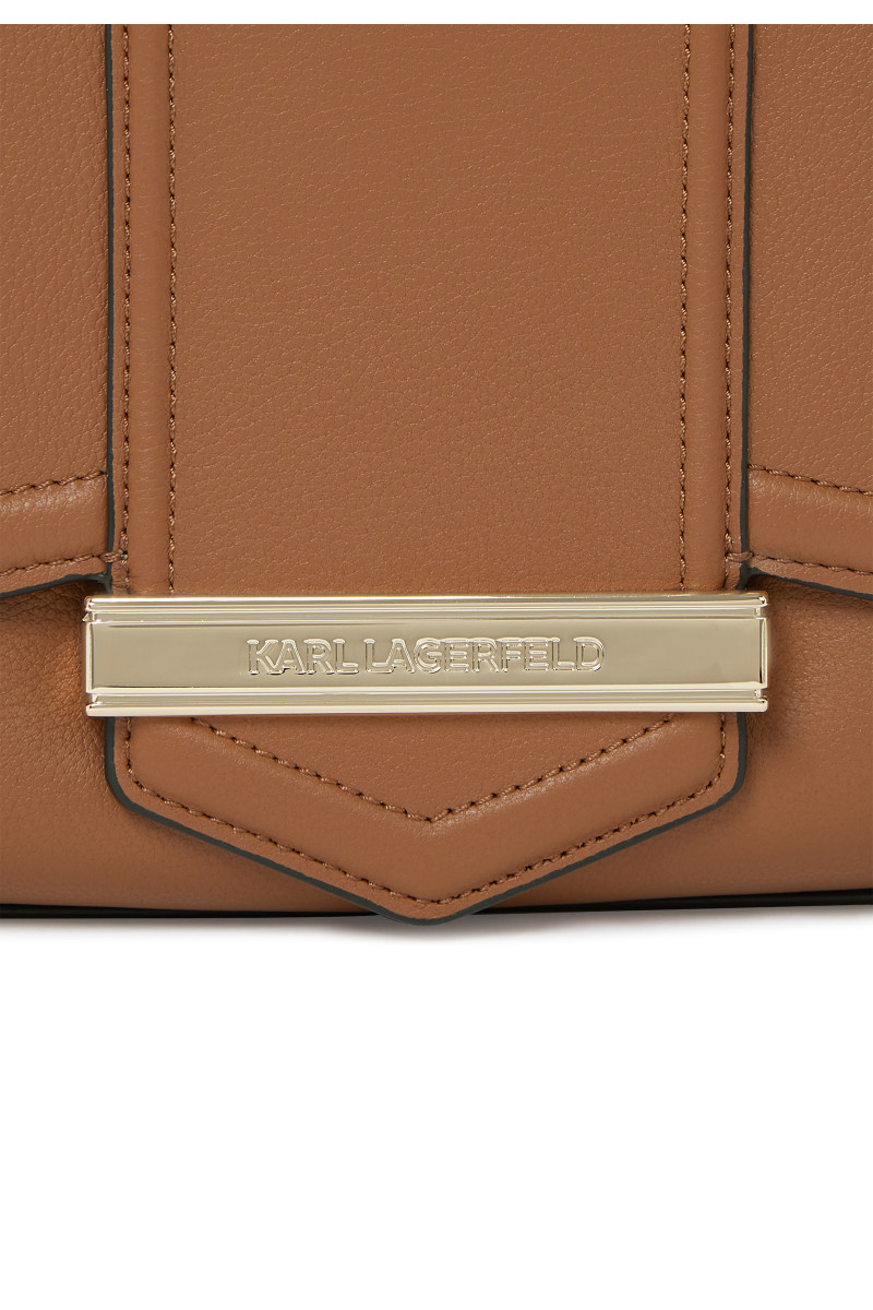 Dámska elegantná crossbody kabelka z mäkkej hovädzej kože. Podlhovastý dizajn zdobený elegantnou plaketou s logom KARL LAGERFELD na chlopni. Elegantné zapínanie na magnetickú chlopňu s hornou rukoväťou s nastaviteľným a odnímateľným crossbody popruhom s retiazkou. Vnútro kabelky je vybavené plochým vreckom na boku a logom KARL. Hladká hovädzia useň prémiovej kvality je veľmi pevná a odolná, zároveň nestráca svoj luxusný vzhľad. Veľmi štýlový doplnok v modernom spracovaní.