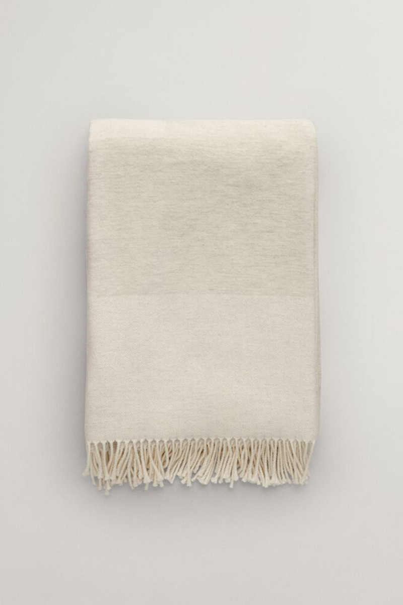 Exkluzívna pokrývka so strapcami, ktorú zdobí výrazné logo GANT v žakárovom spracovaní. Materiálové zloženie s vysokým podielom vlny zaručuje dokonalú ľahkosť a príjemnú hrejivosť. Pokrývka je priedušná, nekrčí sa a nepohlcuje pachy. Veľmi štýlový a zároveň vkusný doplnok, ktorý vynikne v každom priestore Vášho domova. Rozmery: 130 x 180 cm.