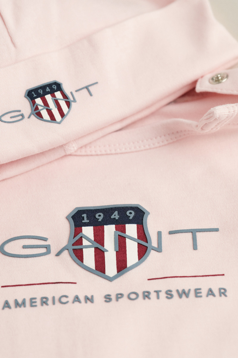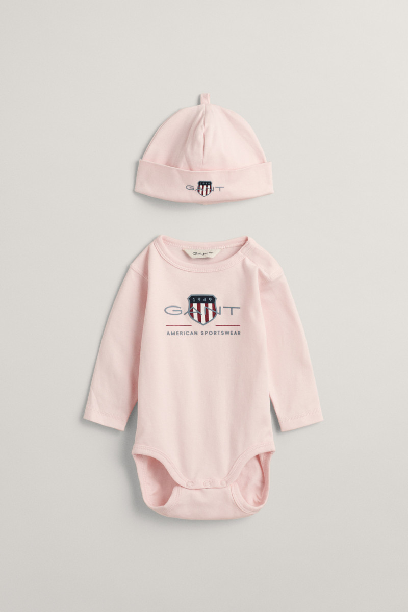 Očarujúca novorodenecká súprava zložená z body s dlhým rukávom a čiapočky s vyšitým nápisom brandu na variabilne nastaviteľnom, spodnom leme. Gant logo v rovnakom prevedení na hrudi. Praktické zapínanie na patentky pri krku a v rozkroku. Materiálové zloženie tvorí jemný džersej z kvalitného bavlneného vlákna organického pôvodu, ktoré vyniká svojou zamatovou hebkosťou, priedušnosťou, avšak hrejivosťou. Unikátny komplet, ktorý zabezpečí Vášmu bábätku maximálny komfort a spokojnosť v priebehu nosenia.