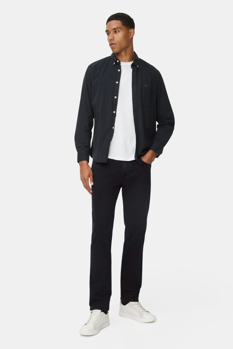 Pánske džínsy Relaxed Fit 5-Pct. Voľnejší strih v oblasti stehien, klasický, stredne vysoký sed. Nohavice s rovným ukončením a tonálnym prešívaním. Nášivka s nápisom brandu nad zadným vreckom. Materiálové zloženie s prímesou elastanu je zárukou vysoko komfortného pocitu počas nosenia a nenáročnej údržby. Veľmi praktický a pohodlný kúsok, ktorý bude vyzerať skvele v kombinácii so športovou bundou a teniskami.
