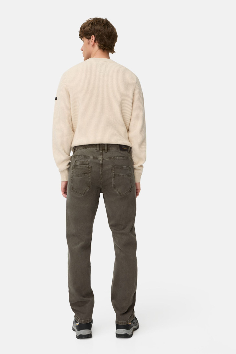 Pánske džínsy Relaxed Fit 5-Pct. Voľnejší strih v oblasti stehien, klasický, stredne vysoký sed. Nohavice s rovným ukončením a tonálnym prešívaním. Nášivka s nápisom brandu nad zadným vreckom. Materiálové zloženie s prímesou elastanu je zárukou vysoko komfortného pocitu počas nosenia a nenáročnej údržby. Veľmi praktický a pohodlný kúsok, ktorý bude vyzerať skvele v kombinácii so športovou bundou a teniskami.