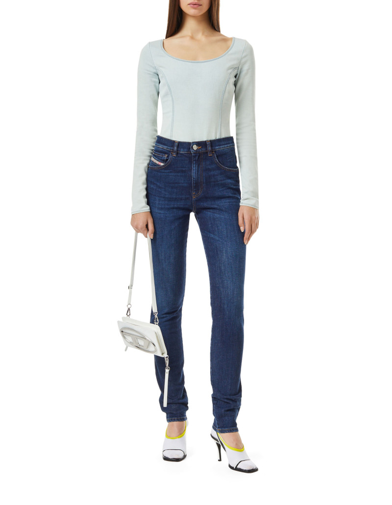 Dámske džínsy v slim fit strihu s vysokým pásom a úzkou nohavicou. Priliehavý dizajn s piatimi vreckami a pútkami na opasok dopĺňa štítok s logom Diesel umiestnený nad zadným vreckom. Džínsy sú inšpirované siluetami z 90. rokov. Odolná denimová tkanina je mäkká, priedušná a veľmi príjemná na dotyk. Zapínanie na zips. Veľkosť zodpovedá bežnému značeniu, pri výbere zvoľte svoju obvyklú veľkosť. Modelka má na sebe veľkosť 26 a je 175 cm. Veľkosť dĺžky nohavíc je 32.