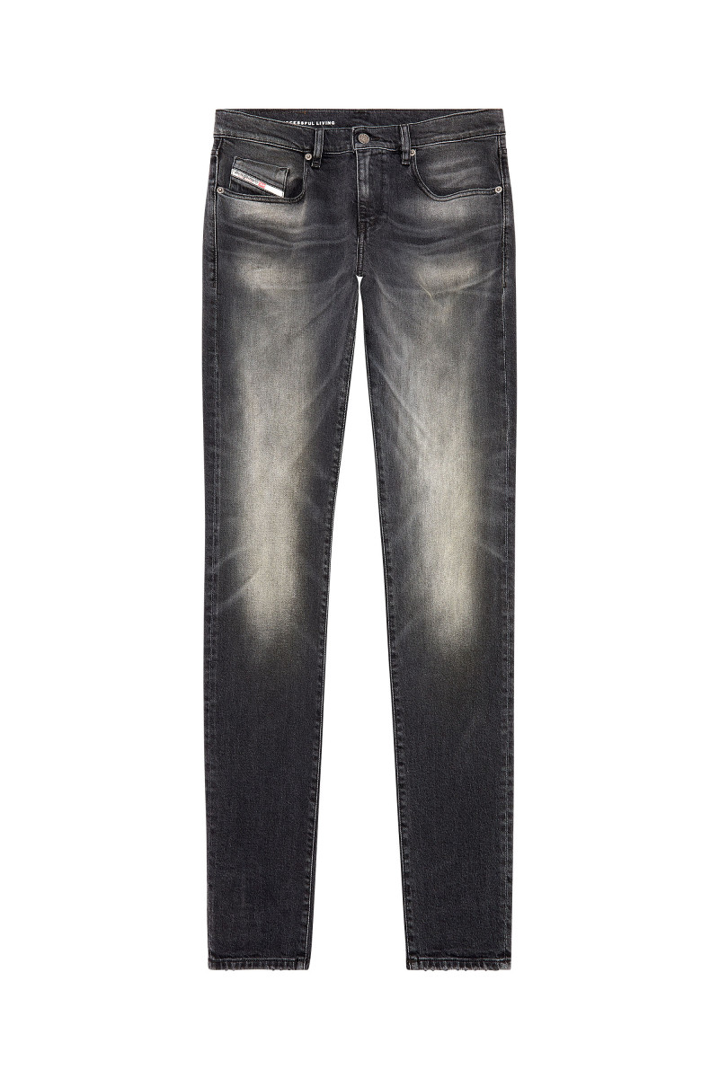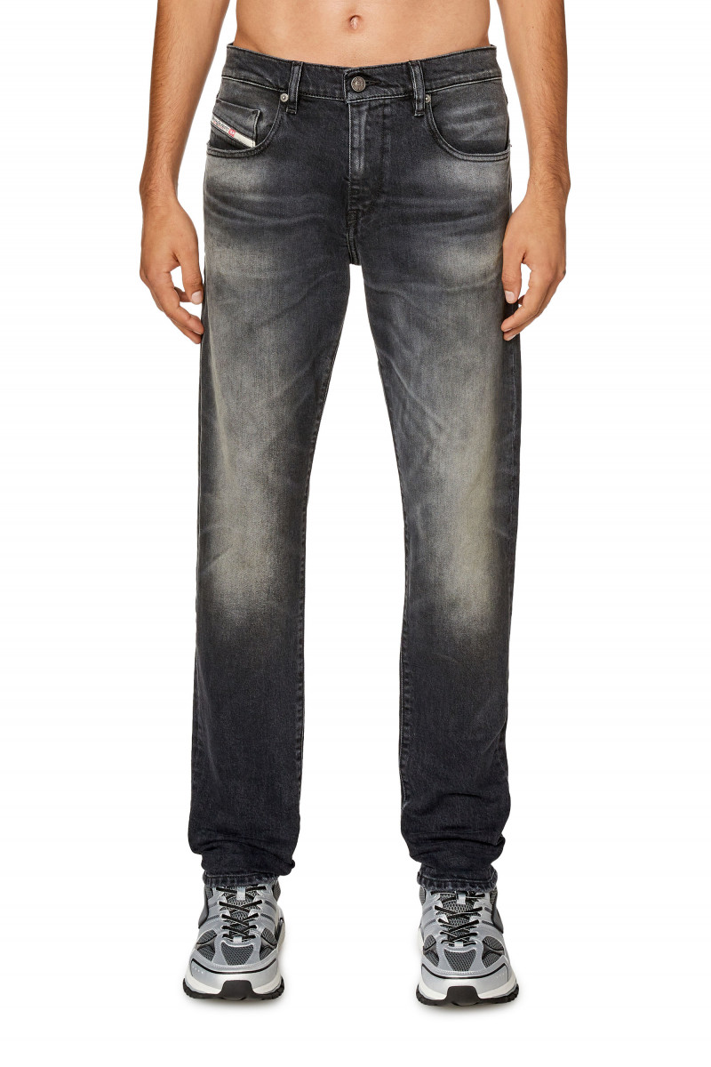 Pánske džínsy v úzkom slim strihu. Populárny dobre padnúci model so stredne vysokým pásom a zapínaním na zips. Tento denim je vyrobený z pohodlnej mäkkej tkaniny zmiešanej čiastočne z organickej bavlny, lyocelu a elastanu. Čierny wash má detailne vyblednuté časti pre použitý vzhľad. Na zadnom vrecku kontrastný detail malého vyšitého loga písmena ,,D".