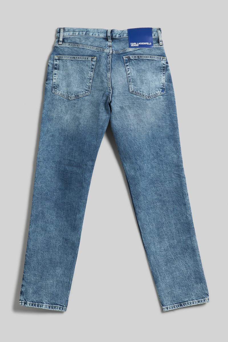 Pánske džínsy v úzkom slim strihu so stredne vysokým pásom a zapínaním na zips. Džinsy sú päťvreckové, zaujímavý wash vzhľad má detailne vyblednuté časti. Nad zadným vreckom je našité kožené logo Karl Lagerfeld jeans. Denimová tkanina zaručuje tvarovú prispôsobivosť a maximálny komfortný pocit pri nosení.