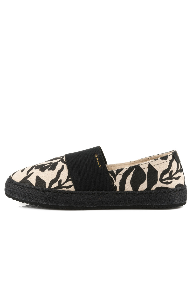 Dámske espadrilky s bavlneným povrchom, ktoré si Vás získajú svojou ľahkosťou a príjemným pocitom pri nosení. Športovo-elegantný dizajn s kontrastnou potlačou palmových listov a pružným lemom na priehlavku dopĺňa decentné logo GANT umiestnené na vonkajšej strane. Ľahkú podrážku zdobí prešívanie s prírodným vláknom raffia. Pohodlný interiér je vybavený textilnou stielkou. Dokonale štýlová obuv, ktorá bude ozdobou Vášho letného outfitu.