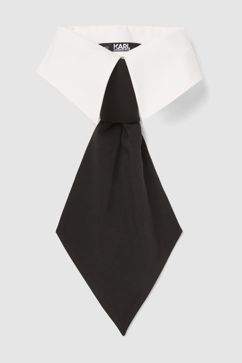 Dámsky elegantný golier s kravatou, s ktorým vdýchnete každému vzhľadu ikonický KARL štýl. Z kolekcie Ultimate Icon, ktorá pripomína výstavu Costume Institute Metropolitan Museum of Art v roku 2023, Karl Lagerfeld: A Line of Beauty. Zapínanie na gombík vzadu pri krku. Dokonalý darček a nenahraditeľne štýlový doplnok rôznych outfitov.