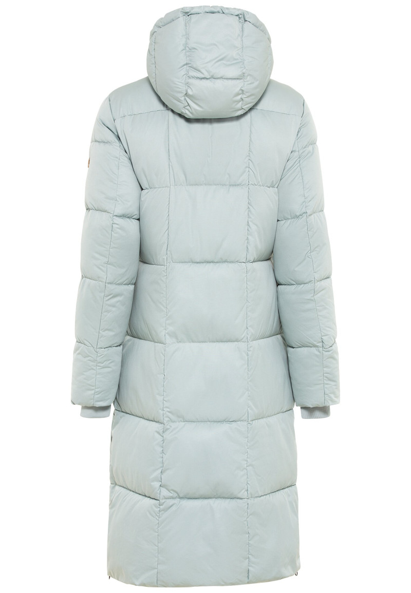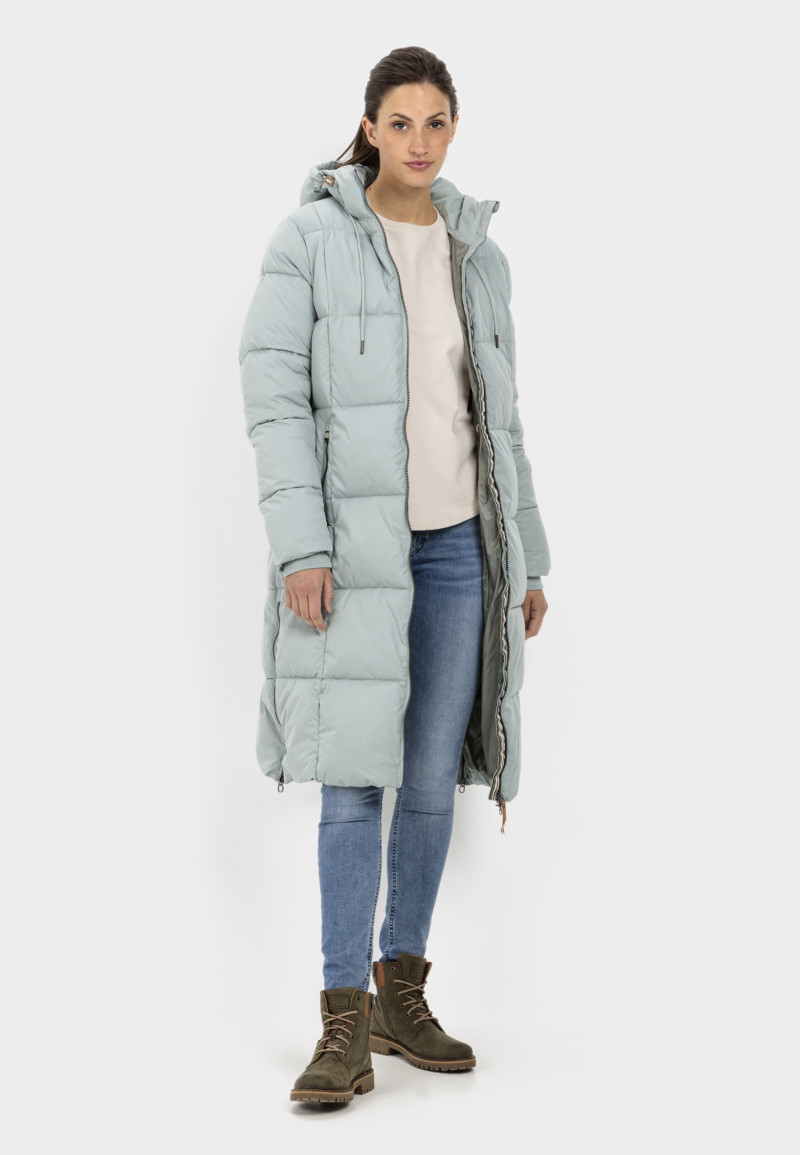 Zimný prešívaný kabát v midi dĺžke, ktorý má vodeodpudivú a vetruodolnú povrchovú úpravu. Uvoľnený strih s vysokým golierom, pevnou kapucňou a nášivkou loga na ľavom rukáve dopĺňa vnútorné sťahovanie v páse, bočné vrecká so zipsom a pružné náplety na rukávoch. Dvojcestný zips a bočné rázporky so zapínaním umožňujú jednoducho a efektívne regulovať šírku kabátu, keď potrebujete väčšiu voľnosť pohybu. Ľahká syntetická výplň zaručuje dokonalú hrejivosť a príjemný pocit pri nosení. Veľmi praktický a skvele prepracovaný kúsok, ktorý štýlovo doladí Váš zimný outfit.