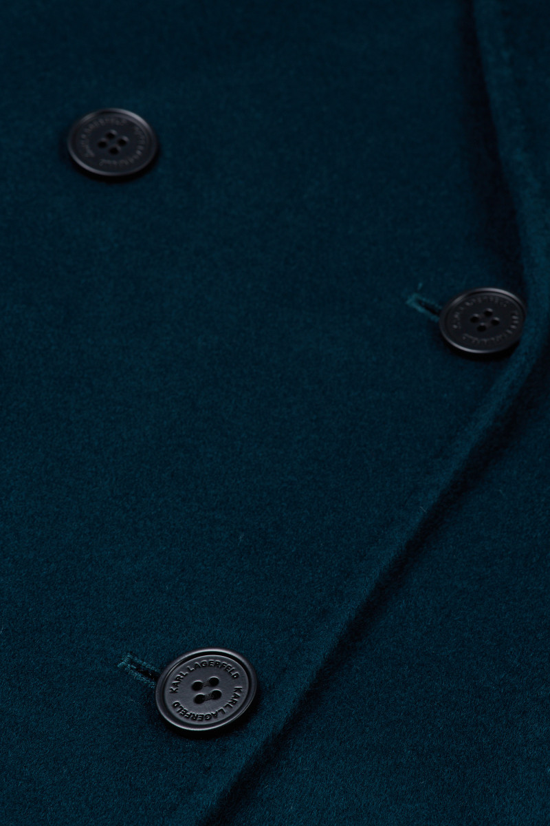 Dámsky vlnený kabát v oversize strihu s dĺžkou pod kolená. Výrazné chlopne, dvojradové zapínanie na gombíky, spadnuté rukávy, výpustkové vrecká, ns ktorom je logo značky Karl Lagerfeld. Materiálové zloženie s vysokým podielom jemne česanej vlny zaručuje maximálnu ľahkosť, priedušnosť a nekrčivý vzhľad. Skvelo prepracovaný a výborne kombinovaný kúsok, ktorý štýlovo oživí Váš ležérny i elegantný outfit.