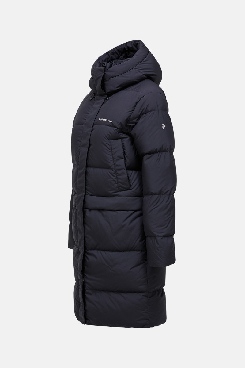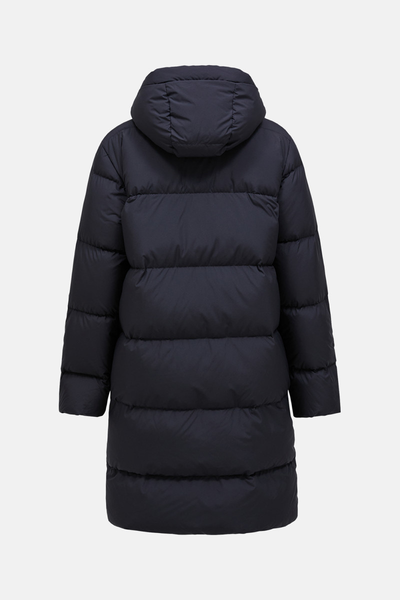 Dámsky prešívaný páperový kabát s kapucňou. Rovný strih a brand logo vyšité na hrudi. Kvalitná výplň z kačacieho peria so zárukou kontrolovaného, ekologického pôvodu vysledovateľného prostredníctvom programu Track My Down® v pomere 80/20 pre maximálne pohodlie. Ďalšími prvkami sú pevná kapucňa, ktorá je vybavená jednoduchým nastavením výšky, takže Vám bude sedieť presne na mieru, elastický lem na rukávoch a zapínanie na dvojcestný zips YKK Vislon® prekrytý légou. Viacero vreciek zahŕňa skryté vrecká na ruky na zips, vnútorné vrecko na zips a náprsné vrecká na gombíky. Kabát je vyrobený z ľahkej tkaniny Pertex® so zateplením z páperia. Veľmi praktický kúsok pre celoročné využitie, ktorý si zamilujete.