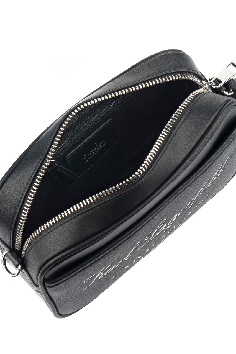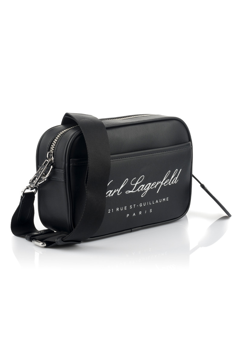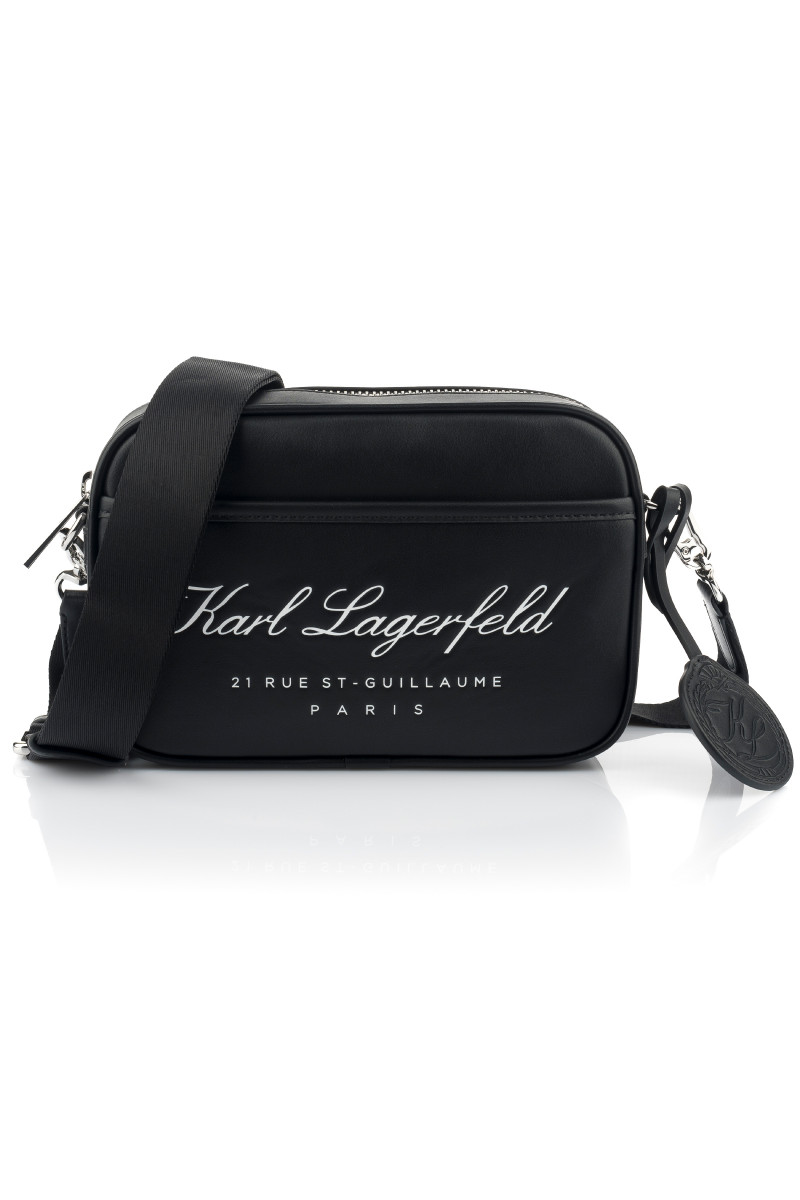 Štýlová taška z hladkej syntetickej kože, zdobená elegantným logom Hotel KARL na prednej strane. Unisex dizajn so zapínaním na dvojcestný zips je doplnený príveskom s logom KL a odnímateľným crossbody popruhom s nastaviteľnou dĺžkou. Vnútro s podšívkou je vybavené plochým vreckom na zips a tonálnou nášivkou s logom. Neprehliadnuteľne štýlový doplnok, ktorý dotiahne Váš outfit k dokonalosti.