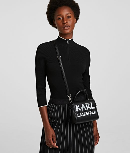 Nezameniteľná kabelka s vrchným uškom z kolekcie K/Ikon si na novú sezónu oblieka grafický streetartový plášť. Verný štýlu značky KARL prepožičiava tento exkluzívny grafitový dizajn moderný nádych nadčasovej klasike.