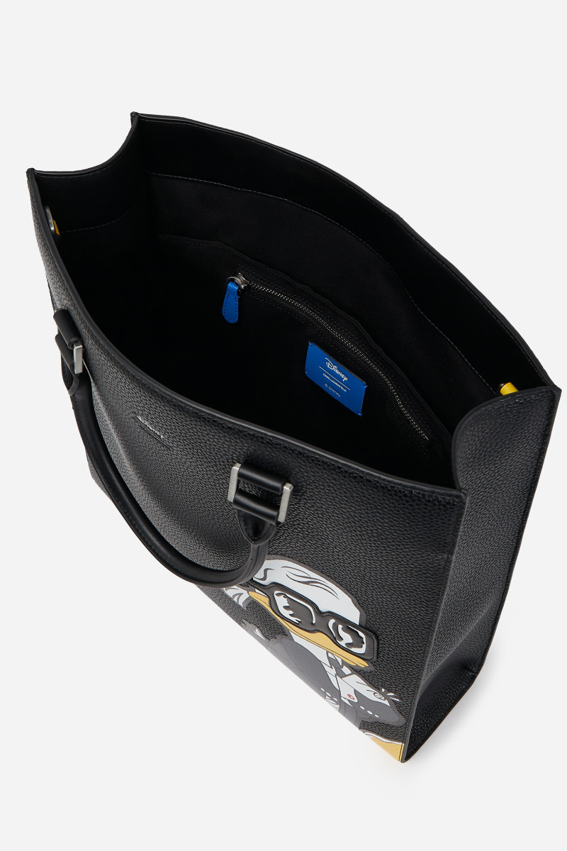 Dámska kabelka zo štruktúrovanej technickej kože, ktorá Vás zaujme svojím univerzálnym využitím a originálnymi detailmi. Praktická silueta ozdobená umeleckým dielom, ktoré predstavuje Disneyho Donalda Káčera v nezameniteľnom štýle Karla Lagerfelda. Priestranný interiér s bočným vreckom so zipsom je doplnený dvoma pevnými rukoväťami a textilnym popruhom cez rameno s nastaviteľnou dĺžkou. Materiálové zloženie je štruktúrovaná technická koža, ktorá vyniká svojou extrémnou pevnosťou a odolnosťou, zároveň však príjemnou mäkkosťou. Nezameniteľne štýlový doplnok, ktorý doladí Váš ležérny outfit k dokonalosti.