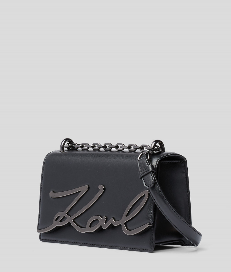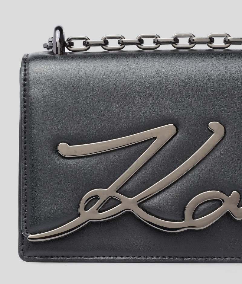 V kompaktnej kabelke s kovovou plaketkou na chlopni, ktorú zdobí ikonický podpis Karla Lagerfelda, sa snúbi elegancia s vynikajúcim dizajnom. Je vyrobená z hladkej kože. Odnímateľný ramenný popruh a retiazka jej prepožičiavajú šmrnc.