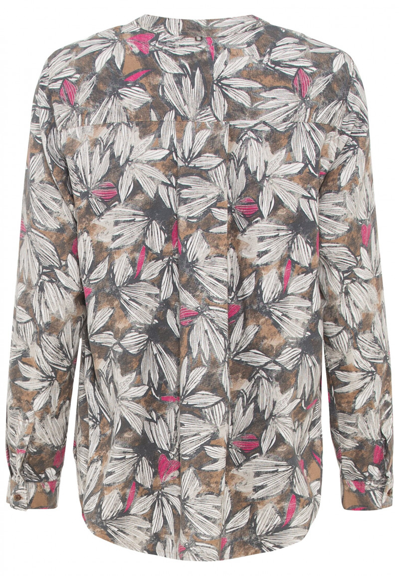 Dámska blúzka s dlhým rukávom, ktorú zdobí originálna kvetinová potlač v prekrásnych farbách. Uvoľnený dizajn s predĺženým zadným dielom a výstrihom do V dopĺňa košeľová manžeta na rukávoch a zámik na chrbte pre väčšiu voľnosť pohybu. Ľahká tkanina zo zmesi bavlny a viskózy zaručuje dokonalú priedušnosť a maximálne príjemný pocit pri nosení. Veľmi nápaditý kúsok, ktorý podčiarkne Vašu ženskosť v akomkoľvek ležérnom aj elegantnom outfite.