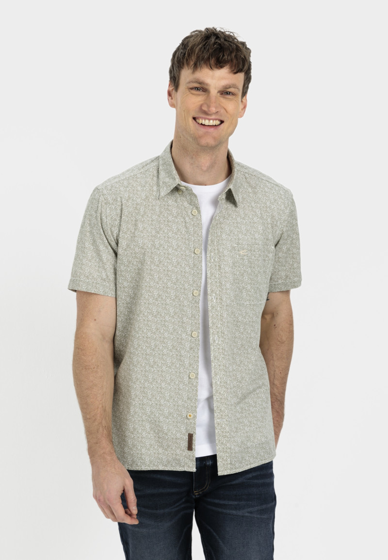 Pánska košeľa s krátkym rukávom a jemným vzorom, rovného strihu. Button down golier s tromi gombíkmi, vrecko s vyšitým logom na hrudi. 100% bavlnená tkanina je dokonale priedušná, veľmi príjemná na dotyk a pohodlná na nosenie. Farebne decentný kúsok, ktorý bude vyzerať perfektne v kombinácii s denimovými nohavicami a ľahkou športovou bundou.