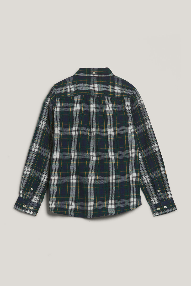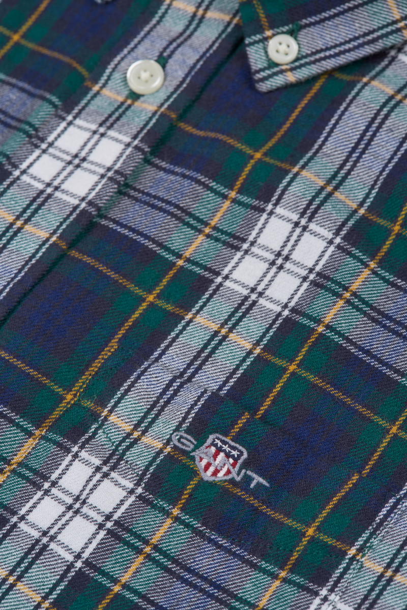 Detská flanelová košeľa v tradičnom kockovanom vzore. Rovný strih s ikonickým button down golierom a tromi gombíkmi na zapínanie dopĺňa nakladané vrecko na hrudi s vyšitým logom Gant a zámik s pútkom na chrbte pre väčšiu voľnosť pohybu. Materiálové zloženie zaručuje dokonalú mäkkosť, priedušnosť a maximálne príjemný pocit pri nosení. Všestranne kombinovateľný kúsok, ktorý štýlovo vynikne v kombinácii s denimovými nohavicami.