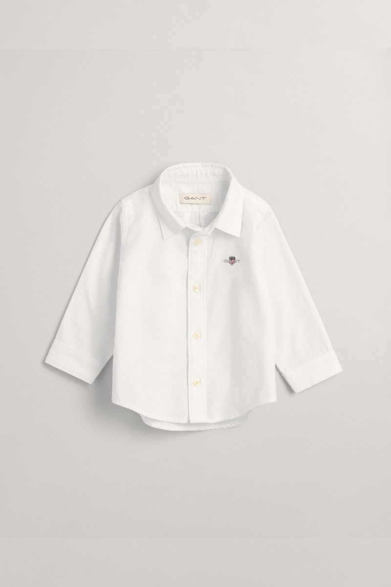 Detská košeľa voľného strihu s dlhými rukávmi. Ikonické logo značky vyšité na hrudi. Materiálové zloženie je tvorené na dotyk príjemne mäkkým bavlneným vláknom prémiového pôvodu. Kvalitná tkanina je vďaka svojej ľahko pórovitej textúre dokonale priedušná a pre bábätko predstavuje záruku vysoko komfortného pocitu a spokojnosti v priebehu nosenia. Štýlový artikel, ktorý v kombinácii s plátennými chino nohavicami či šortkami vytvorí čarovný outfit na špeciálne príležitosti.