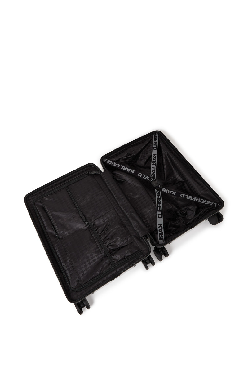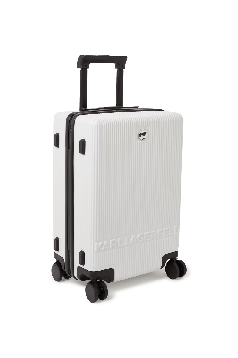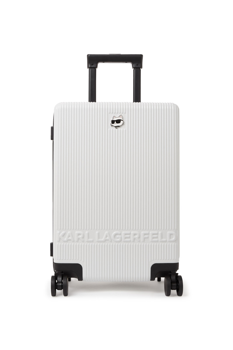Originálny kufor na kolieskach z odolného a ľahkého materiálu, ktorý je ozdobený celoplošným vrúbkovaným dizajnom a Choupette odznakom s logom Karl Lagerfeld na prednej strane. Maximálne praktické detaily v podobe hornej rukoväte, výsuvnej rukoväte, bočného madla a zapínania na zips dopĺňa podšitý interiér s prepracovaným organizérom. Nechýba bezpečnostný systém TSA na ochranu Vašich osobných vecí. Nezameniteľne štýlový doplnok Vášho nevyhnutného cestovného vybavenia.