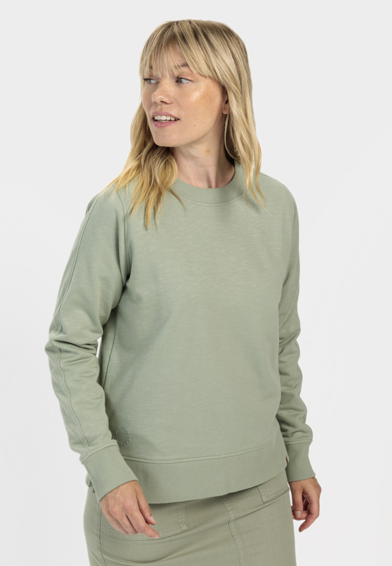 Dámska mikina rovného strihu s okrúhlym výstrihom. Pružné, rebrované náplety v páse aj na zápästí. Príjemne mäkké materiálové zloženie tvorí dokonale priedušný bavlnený džersej prémiovej kvality, ktorý je veľmi pohodlný počas nosenia. Štýlový základ voľnočasového stylingu, ktorý bude perfektne vyzerať v kombinácii s košeľou, denimovými nohavicami.