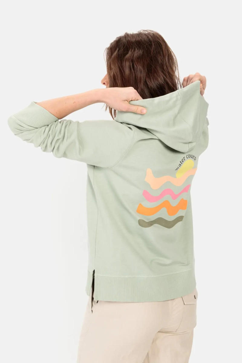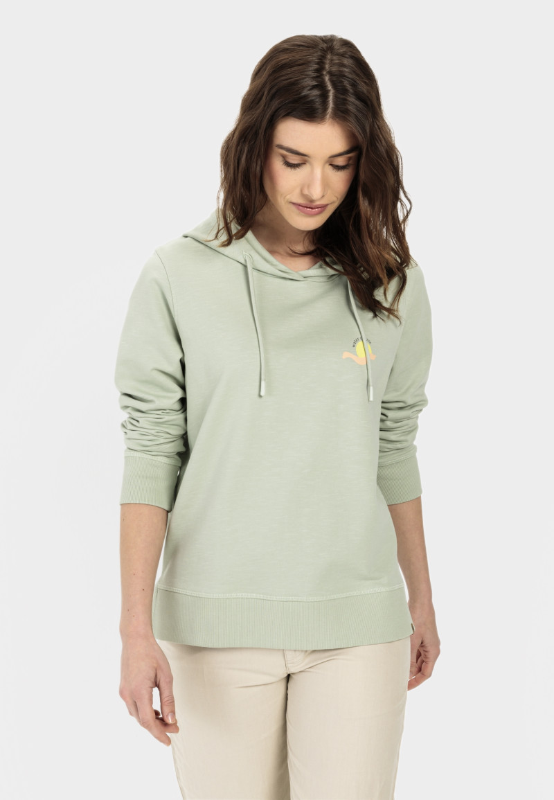 Dámska mikina s kapucňou na stiahnutie v rovnom strihu. Klasický dizajn dopĺňa originálnu sezónnu potlač na prednom aj zadnom diele. Kvalitné materiálové zloženie s vysokým podielom bavlny zaručuje maximálne pohodlie, tvarovú stálosť a jednoduchú údržbu. Veľmi praktický a zároveň nápaditý kúsok na voľný čas, ktorý skvele doladí každý Váš športovo ležérny outfit.