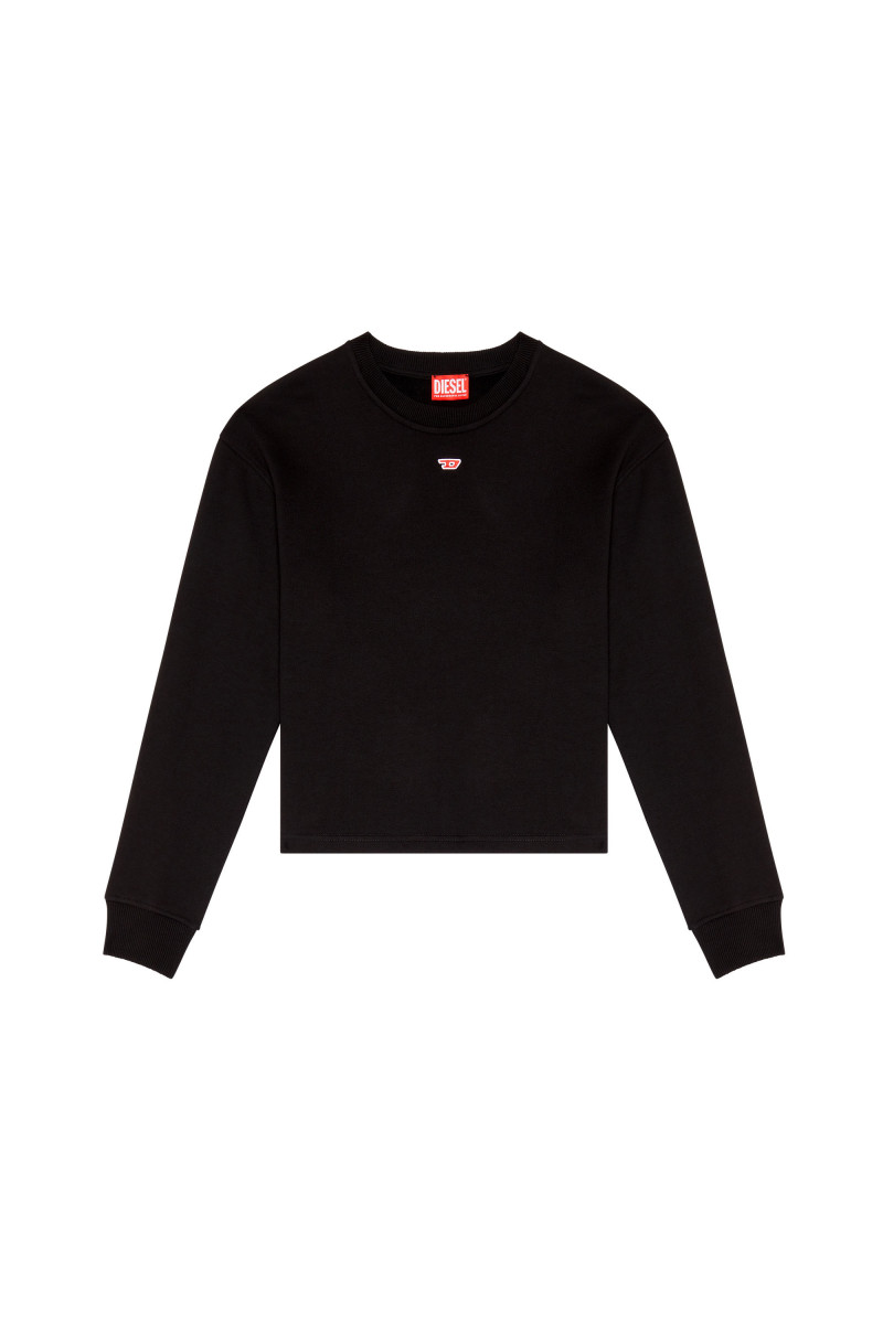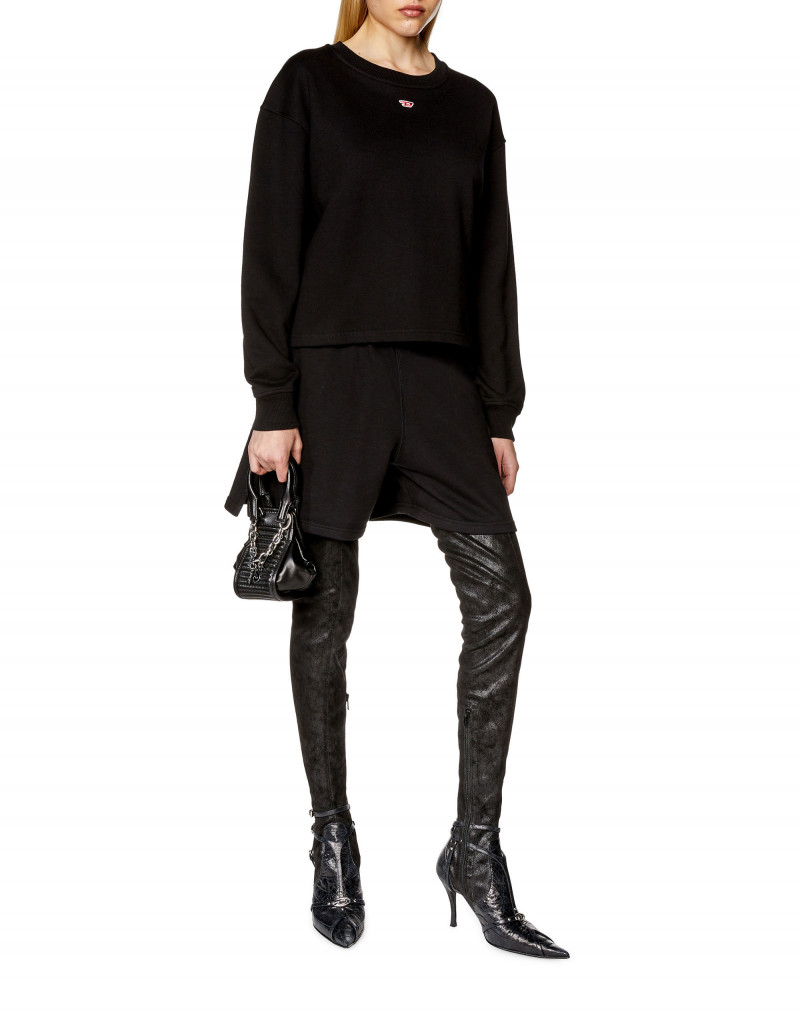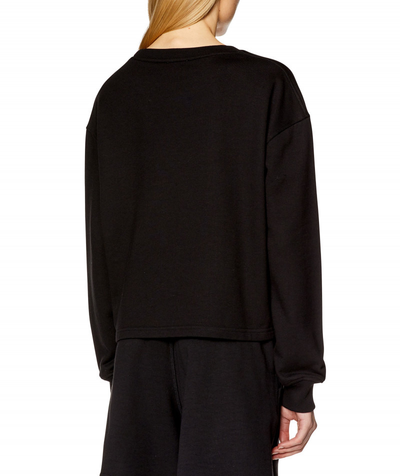Dámska mikina s okrúhlym výstrihom. Navrhnutá v rovnej, voľnej siluete. Vyrobená z džerseja z organickej bavlny a recyklovaného polyesteru. Minimalistický dizajn tvorí detail nášivky s logom v tvare písmena "D" umiestneným v strede hrude. Rebrované lemovanie pri krku a manžetách. Veľkosti bývajú väčšie, pri výbere si vyberte o jednu veľkosť menšiu ako zvyčajne. Modelka má na sebe veľkosť S a je vysoká 175 cm.