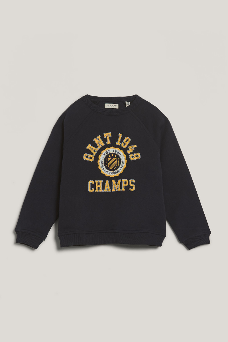 Detská mikina uvoľneného strihu. Športový dizajn s rebrovanými lemami pri krku, v páse a na raglánových rukávoch dopĺňa kontrastná potlač loga Gant umiestnená na hrudi. Kvalitné materiálové zloženie so 100% podielom prémiovej bavlny zaručuje maximálne pohodlie, tvarovú stálosť a jednoduchú údržbu. Dokonale praktický a zároveň štýlový kúsok vhodný na každodenné nosenie.