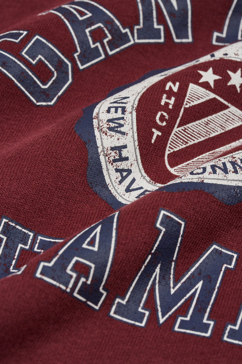 Detská mikina uvoľneného strihu. Športový dizajn s rebrovanými lemami pri krku, v páse a na raglánových rukávoch dopĺňa kontrastná potlač loga Gant umiestnená na hrudi. Kvalitné materiálové zloženie so 100% podielom prémiovej bavlny zaručuje maximálne pohodlie, tvarovú stálosť a jednoduchú údržbu. Dokonale praktický a zároveň štýlový kúsok vhodný na každodenné nosenie.