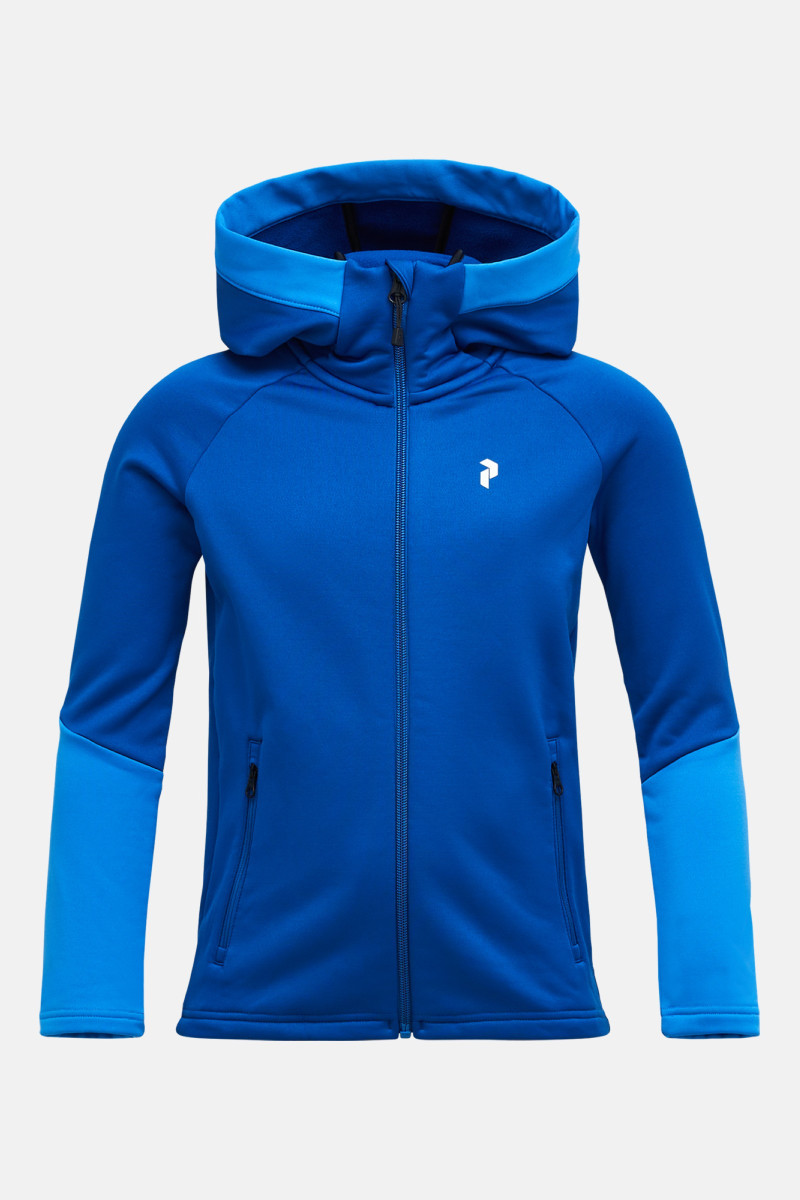 Detská mikina s dlhými rukávmi a kapucňou. Rovný strih zo zapínaním na zips YKK, elastický materiál a raglánové rukávy dopĺňa centrálny zips vedený do vysokého stojačika s ochranou brady, potlač značky Peak Performance na kapucni a znak P na hrudi ako aj bočné vrecká na zips. Materiálové zloženie a celkové spracovanie zaručujú dokonalý komfort pri nosení a skvelé funkčné vlastnosti. Mikina je vyrobená z odolného, ľahkého, rýchloschnúceho a pružného materiálu, ktorý výborne odvádza vlhkosť s brúsenou zadnou stranou, ktorá poskytuje teplo a mäkkosť. Veľmi praktický a nápaditý kúsok počas celého roka pre akékoľvek outdoorové dobrodružstvo, od lyžovania až po turistiku.