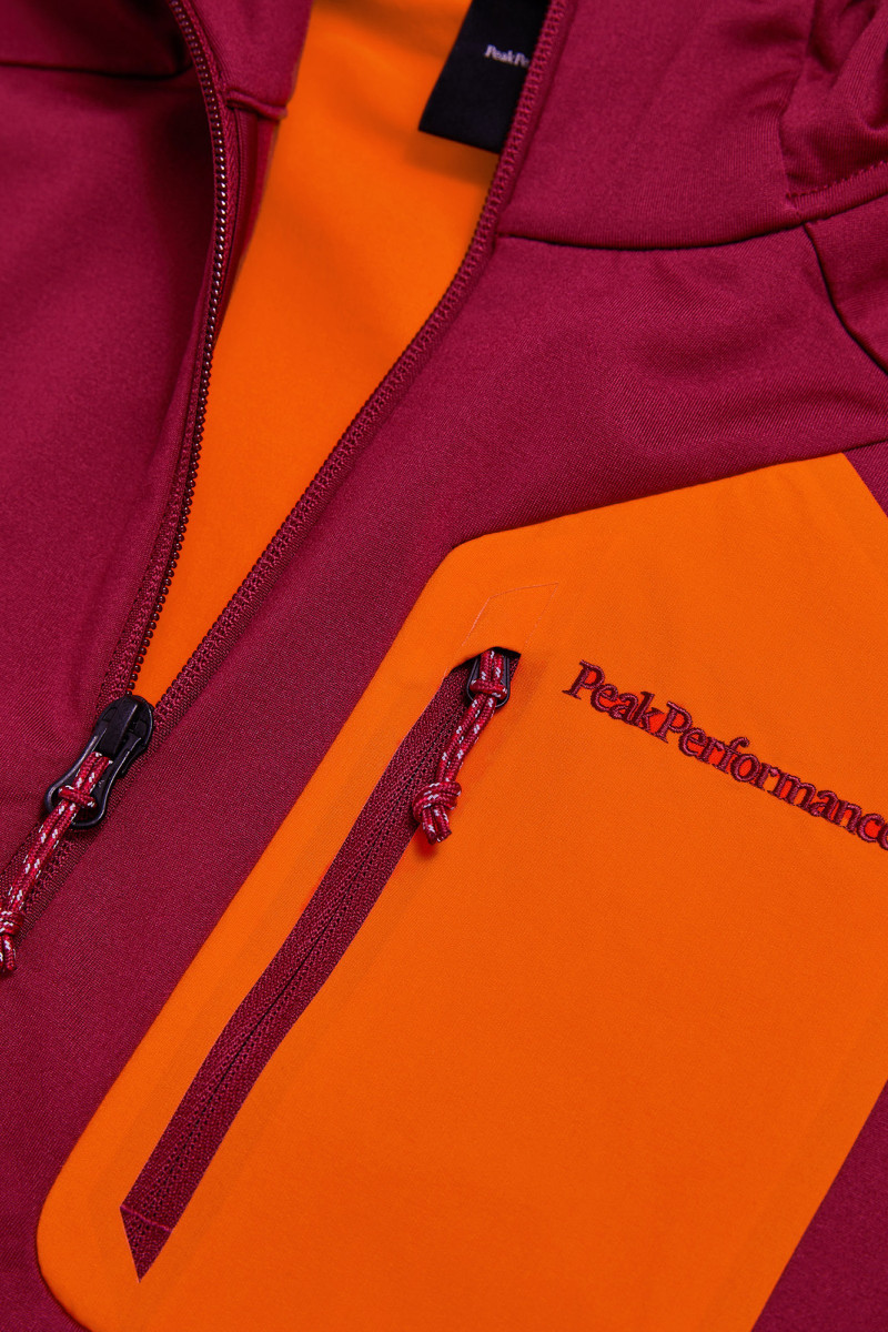 Dámska mikina s kapucňou na zips. Priliehavý strih s pevnou kapucňou, raglánovými rukávmi, elastickým spodným lemom dopĺňajú reflexné zipsy, potlač Peak Performance na hrudi, výšivka s logom P na rukáve a Peak Performance vyrazené na zadnej strane. Mikina obsahuje zipsovateľné náprsné vrecko, vrecká na ruky a vrecko na rukáve, kde si viete bezpečne uložiť Vaše veci ako mobil a kľúče. Mikina je vyrobená z veľmi pohodlného, pružného a ľahkého materiálu, ktorého spracovanie odpudzuje ľahký dážď. Materiálové zloženie a celkové spracovanie zaručujú dokonalý komfort pri nosení a minimálnu skladnosť na cestách. Veľmi praktický a nápaditý kúsok pre Váš voľný čas.