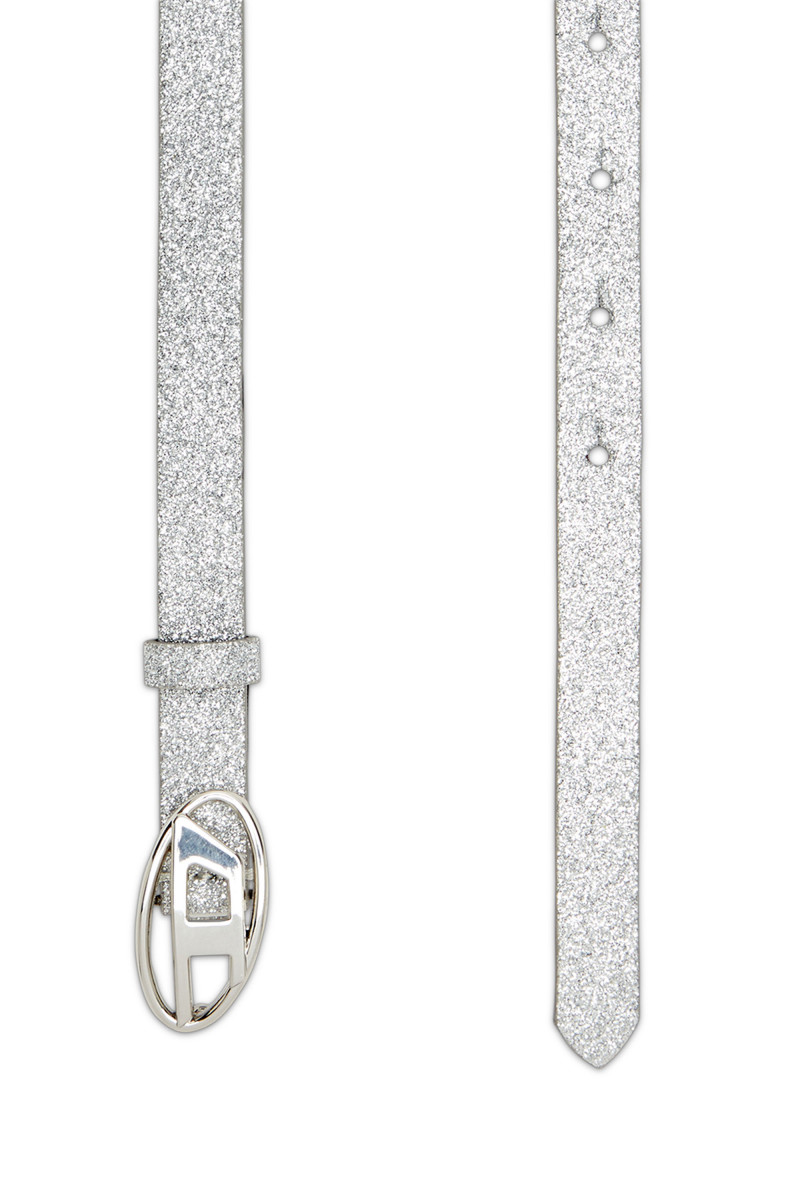 Dámsky opasok s ikonickým logom. Vyrobený z koženého základu doplneného o trblietavú látkovú vrstvu. Decentný tenký dizajn. Zakončený kovovou oválnou sponou s obľúbeným logom v tvare písmena "D".