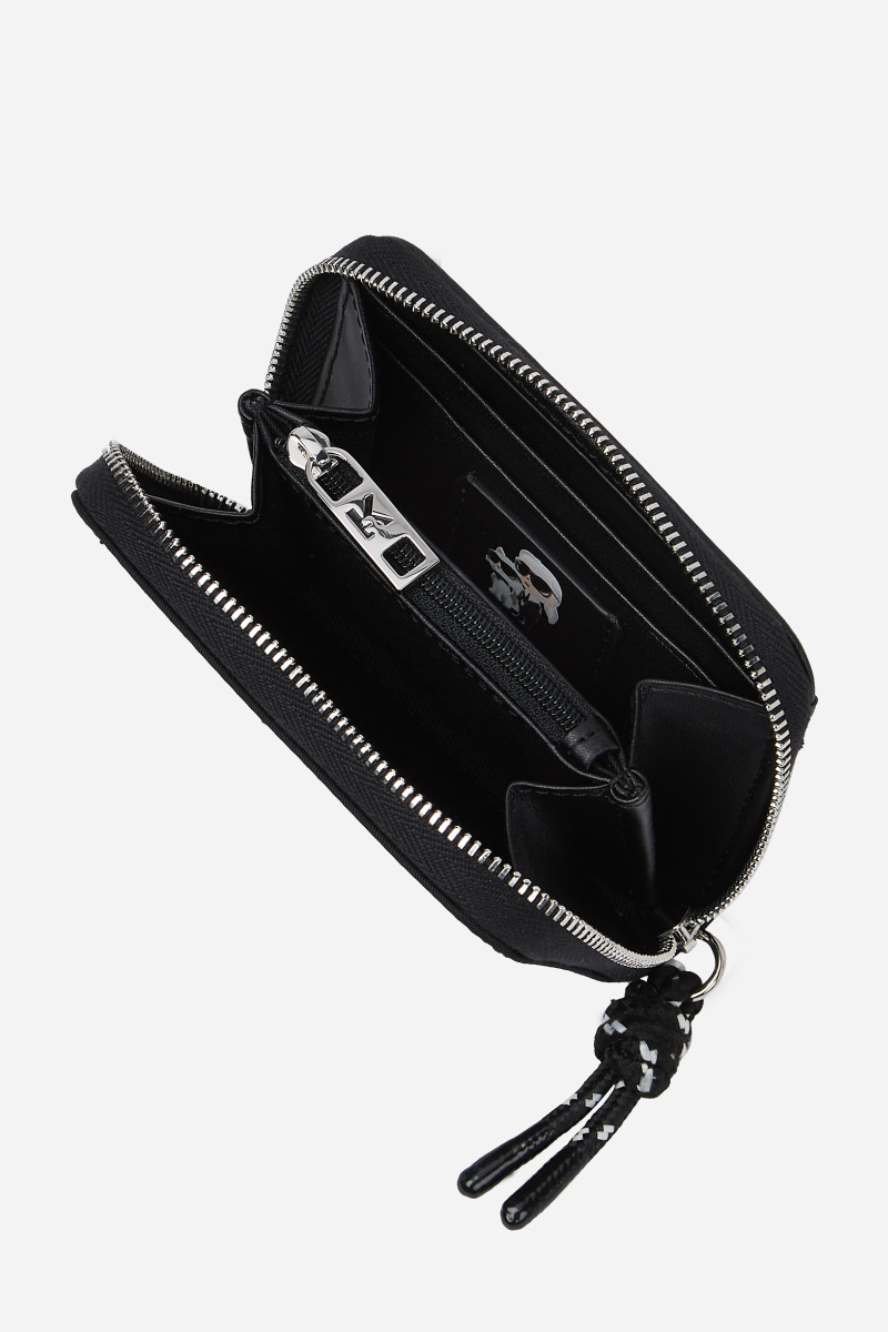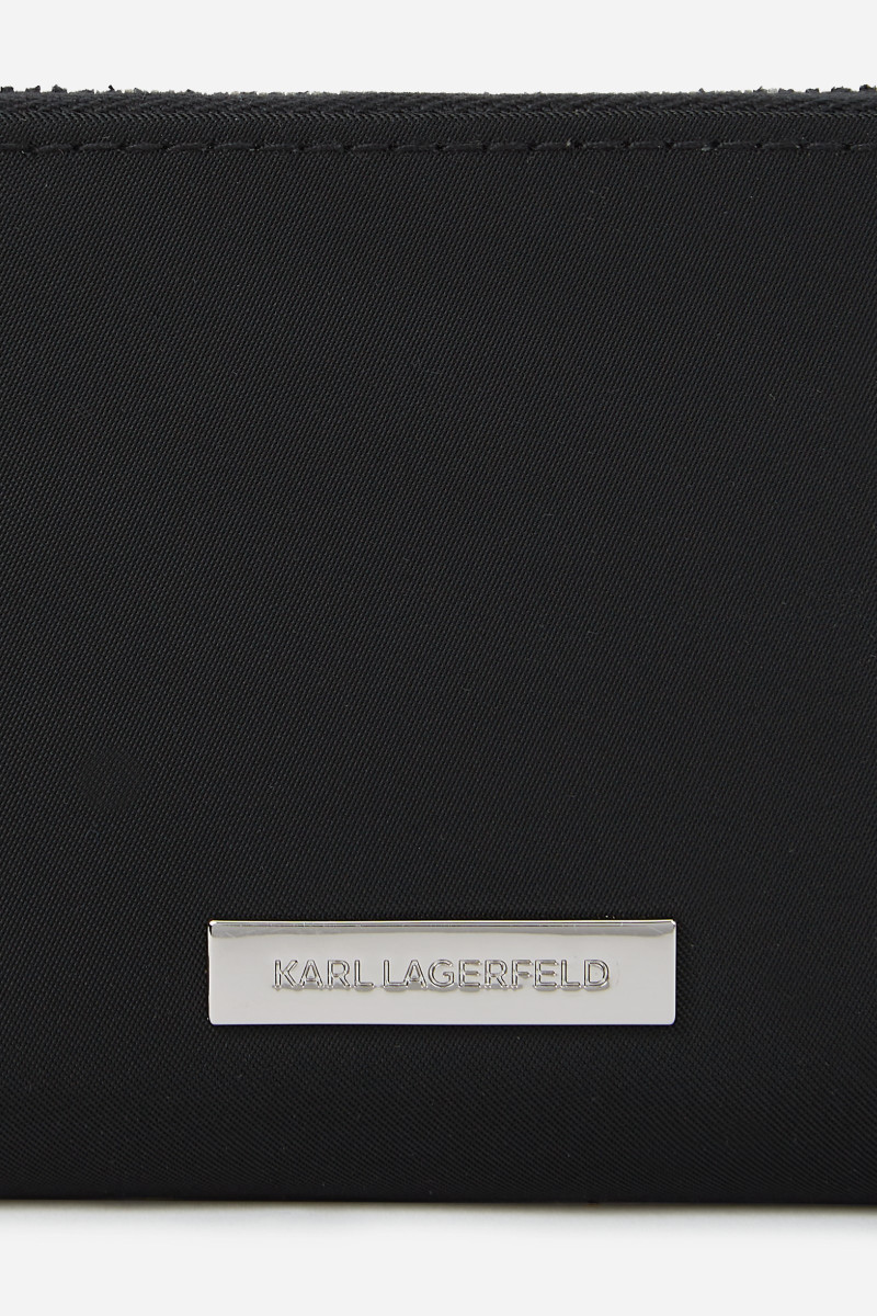 Dámska peňaženka z technickej kože prémiovej kvality, ktorú zdobí kovová plaketa s logom Karl Lagerfeld umiestnené na prednej strane. Elegantný dizajn strednej veľkosti so zapínaním na zips s príveskom dopĺňa vnútorné vrecko na mince vybavené zipsom zdobené Ikonik Karl s Choupette a niekoľko priehradiek na karty. Originálny darček aj nezameniteľne štýlový doplnok pre všetkých milovníkov značky Karl Lagerfeld.