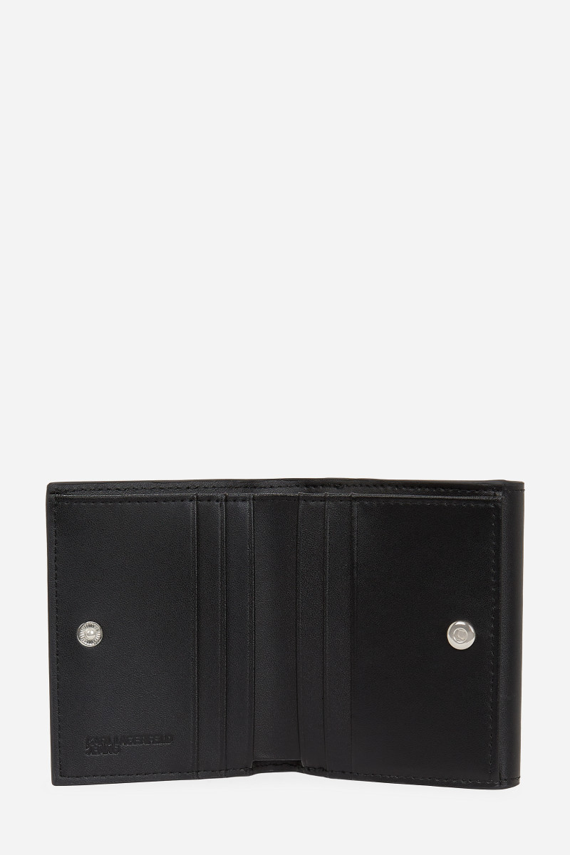 Dámska skladaná peňaženka z hovädzej usne prémiovej kvality, ktorú zdobí kovová iniciálka K s logom Karl Lagerfeld Jeans na prednej strane. Jednofarebný dizajn obsahuje niekoľko priehradok na karty a bankovky. Povrchový materiál tvorí hovädzia useň prémiovej kvality, ktorá vyniká svojou pevnosťou a odolnosťou, zároveň však nestráca svoj luxusný vzhľad. Dokonalý darček aj nezameniteľne štýlový doplnok pre všetkých milovníkov značky Karl Lagerfeld.