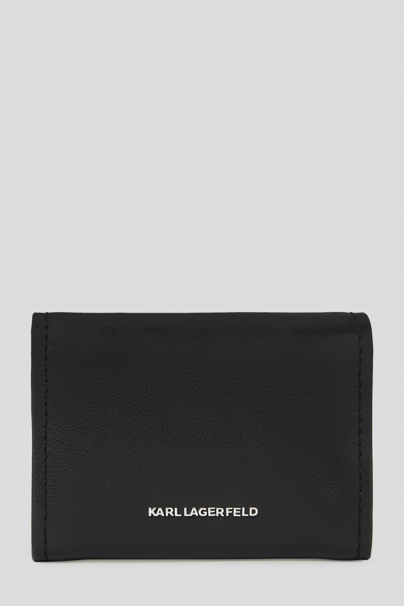 Skladaná kožená peňaženka z hladkej hovädzej kože, ktorú zdobí výrazné kovové logo Ikonik Karl na prednej časti. Má viacero priehradok na perfektné usporiadanie kariet, bankoviek a mincí. Uzatváranie na klapku.