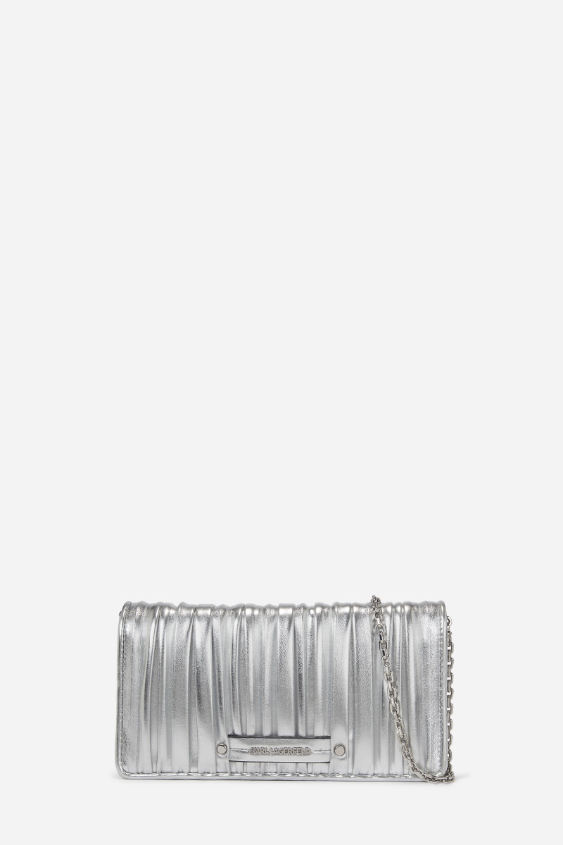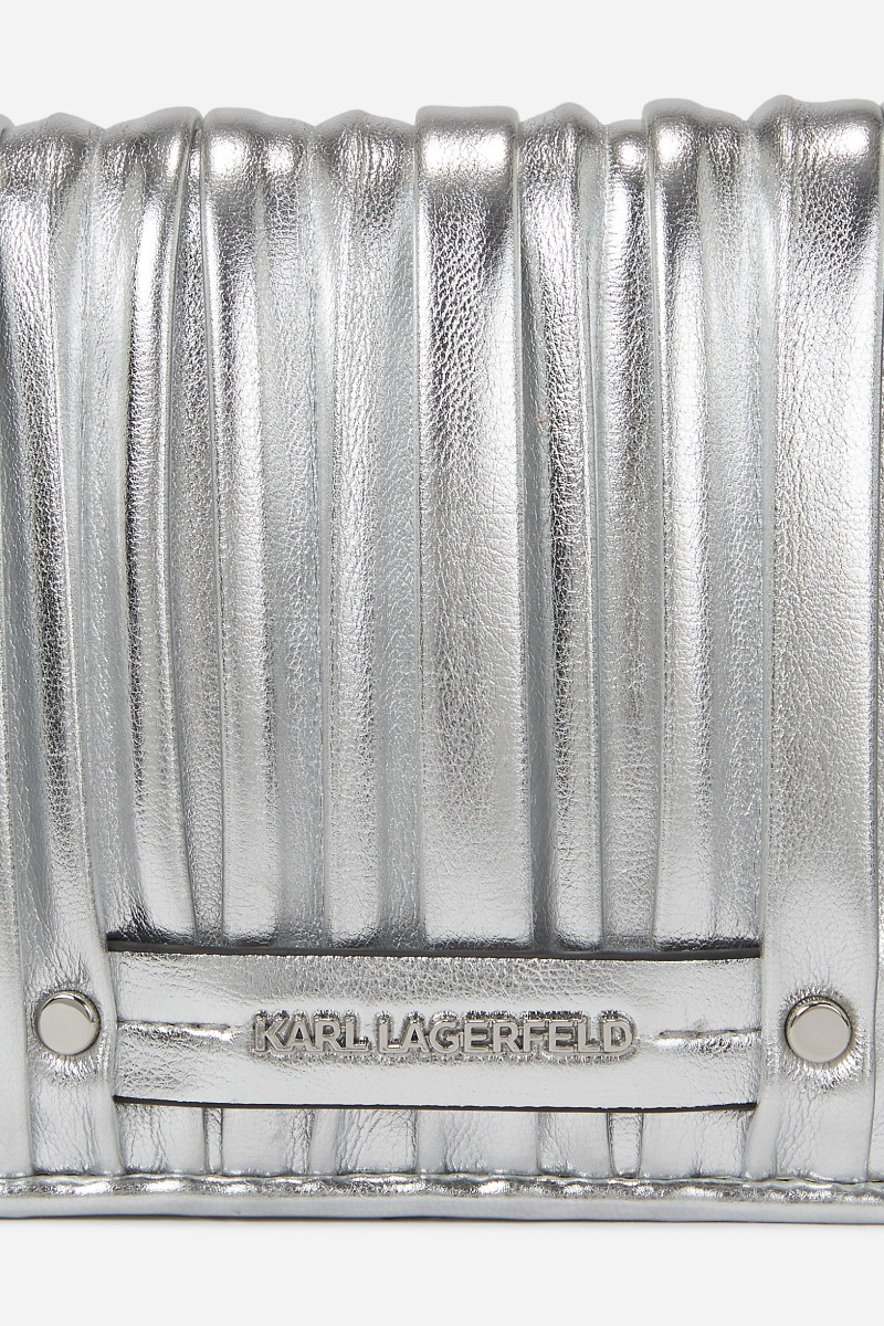 Dámska crossbody peňaženka v štýlovom prevedení so skladanou konštrukciou z technickej kože. Kompaktný dizajn s priestranným vnútrom a priehradkami na karty doplnená o štýlový retiazkový popruh so zapínaním na magnet. Jednofarebný dizajn so striebornými doplnkami a pásom s logom Karl Lagerfeld na prednej strane. Originálny darček a nenahraditeľne štýlový doplnok pre všetkých milovníkov značky Karl Lagerfeld.