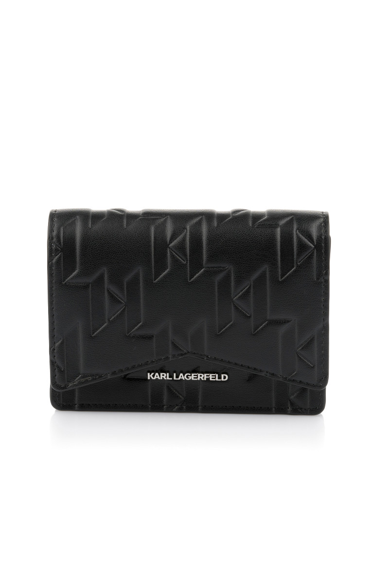 Dámska praktická peňaženka v štýlovom prevedení z recyklovateľnej kože. Praktický dizajn je vybavený niekoľkými slotmi na karty a priestorom na mince alebo bankovky. Jednofarebný dizajn s celoplošným monogramom doplnený kovovým logom Karl Lagerfeld na prednej strane. Originálny darček a nenahraditeľne štýlový doplnok pre všetkých milovníkov značky Karl Lagerfeld.
