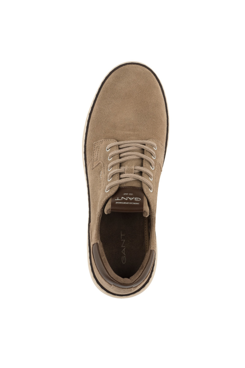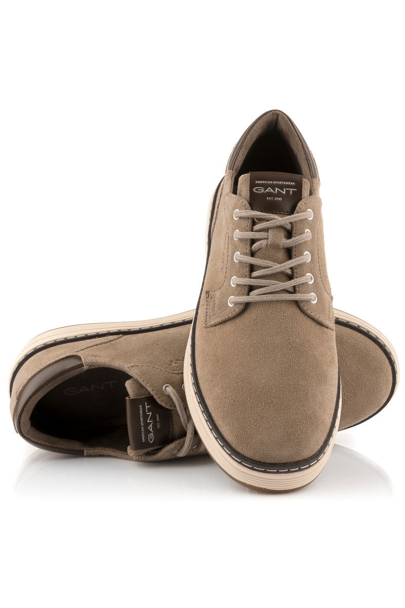 Pánske polobotky z jemnej kože prémiovej kvality, ktoré dopĺňa praktický, kontrastne spracovaný detail zosilnenej päty a ikonický label na jazyku z hladkej kože. Nechýba ani minimalistický nápis značky Gant vytlačený na bočnej strane topánky pod šnurovaním a rafinovane umiestnené logo v gumovej podrážke pod pätou. Príjemne mäkká podšívka dopĺňa pružná stielka, ktorá maximalizuje komfortný pocit počas nosenia. Ľahko kombinovateľný typ obuvi, ktorý sa stane veľmi vkusným doplnkom Vašich ležérnych outfitov.
